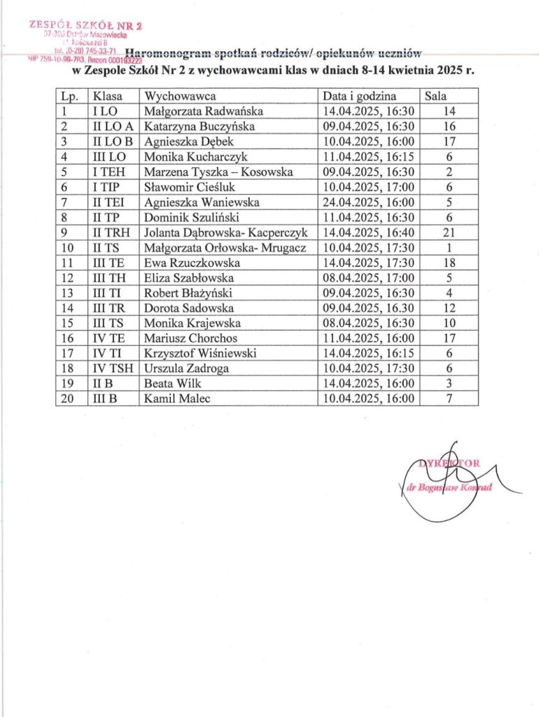 Spotkania z rodzicami / Wiadomości ze szkoły / By Dominik Szuliński Zapraszamy do zapoznania się z powyższym harmonogramem.