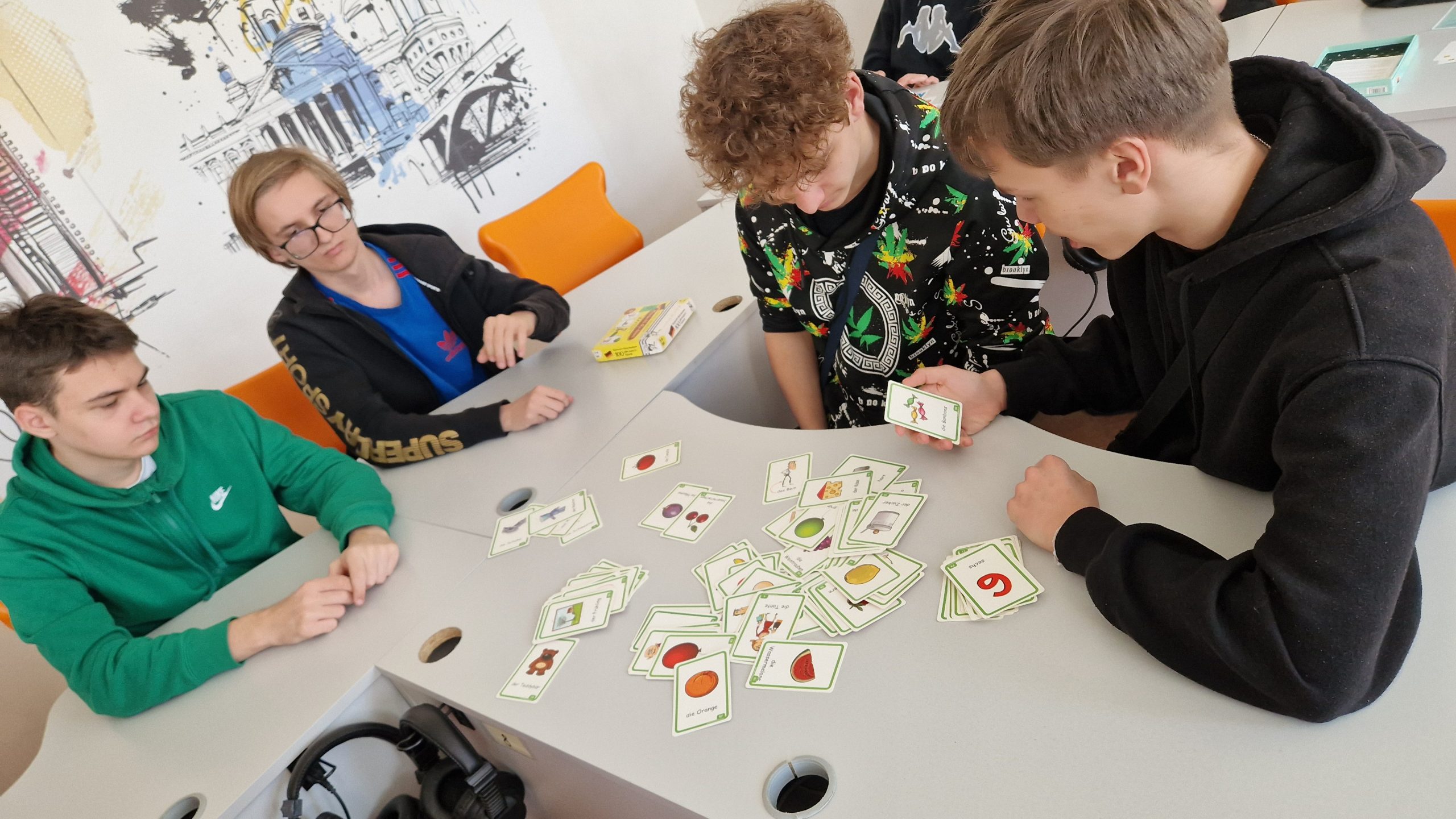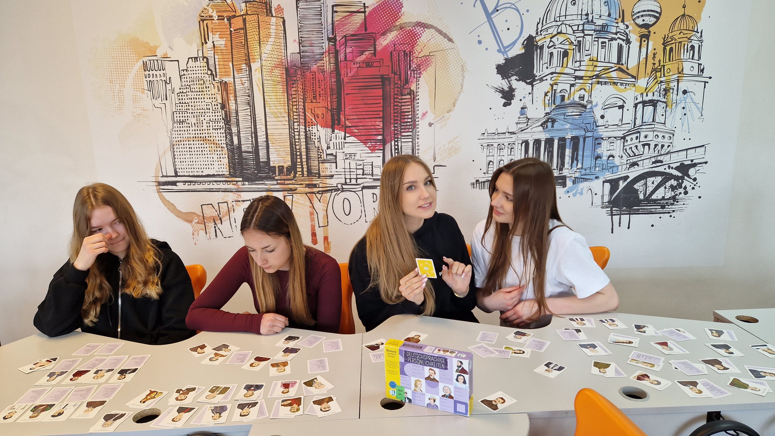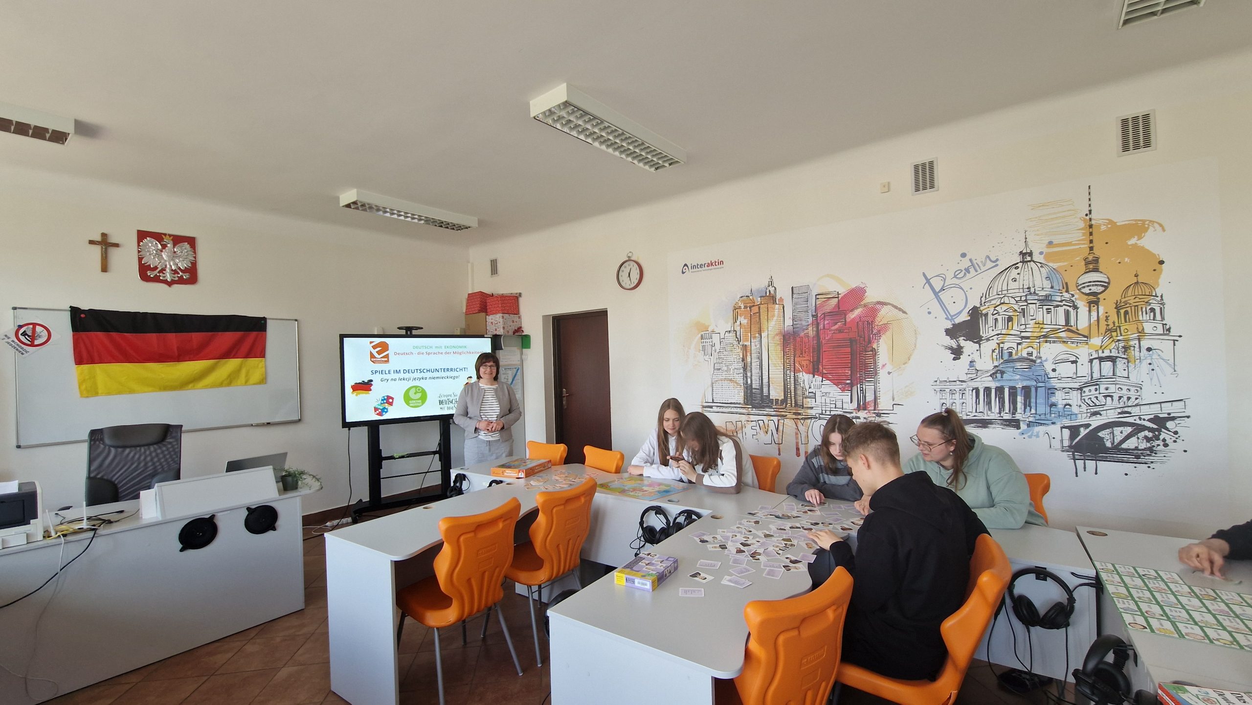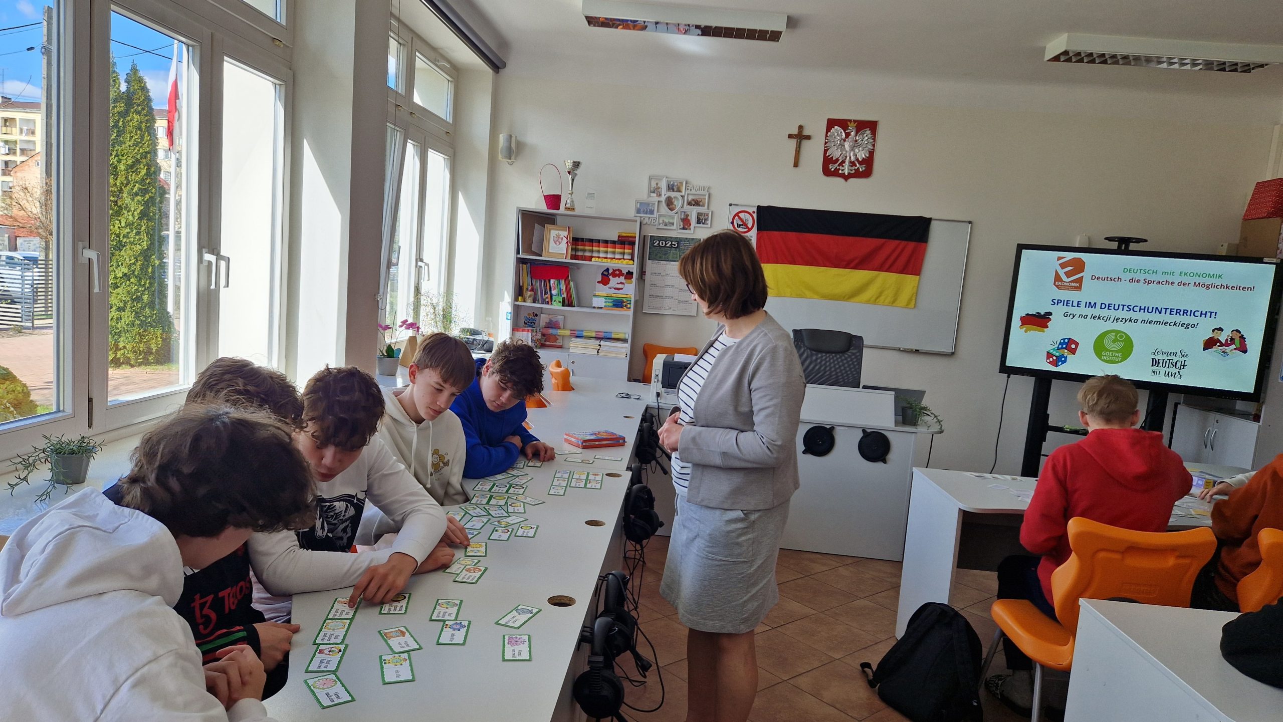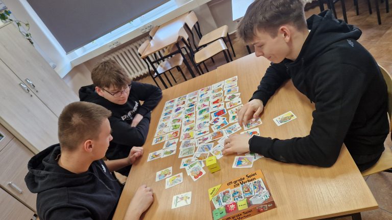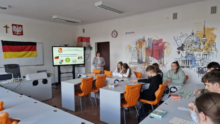 W ramach rozwijania potencjału językowego uczniów oraz otwartości na nowe aktywności edukacyjne w klasach I TIP, II LOb, II TRH oraz III TI w dniach od 8 do 14 kwietnia 2025r. zostały przeprowadzone przez panią dr J. Pecko zajęcia z wykorzystaniem gier planszowych oraz interaktywnych jako zasobów dydaktycznych Goethe-Institut Warschau.