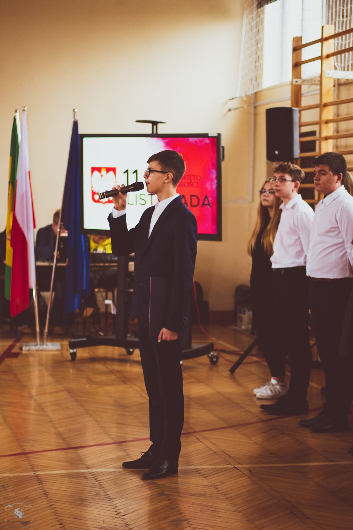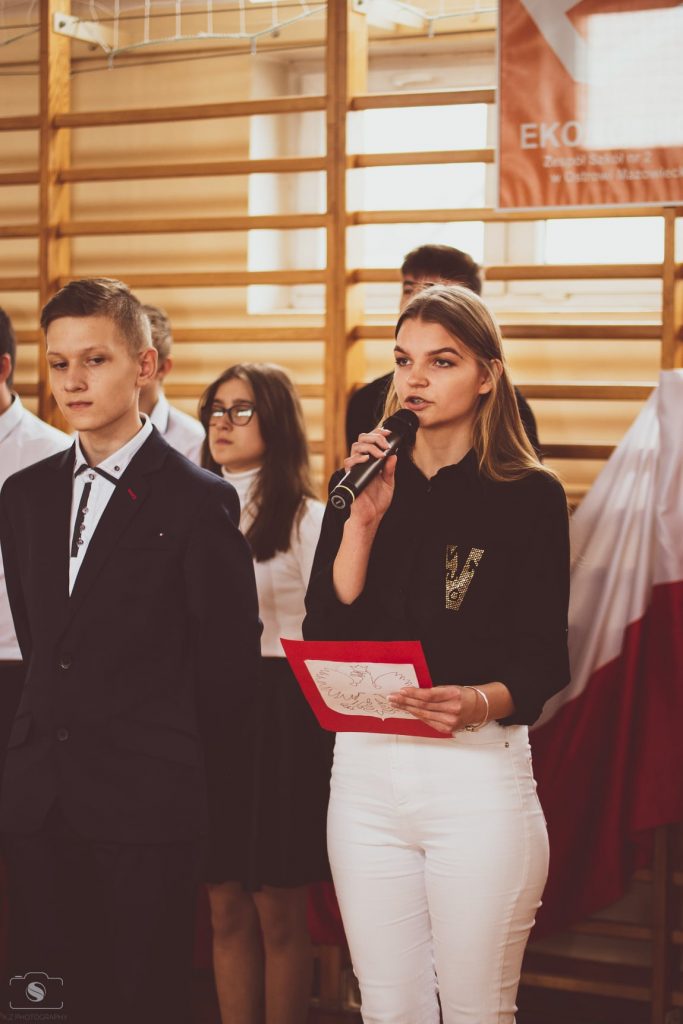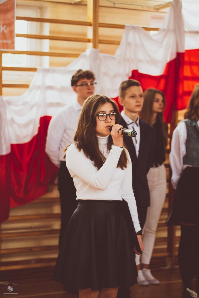 11 listopada obchodzimy Narodowe Święto Niepodległości, które zostało ustanowione w 1937 r. na pamiątkę odzyskanej przez Polskę wolności. Z tej okazji 9 listopada odbyła się w naszej szkole akademia upamiętniająca tych, którzy oddali swoje życie na ołtarzu Ojczyzny. Pamięć minionych dni przywołał montaż słowno-muzyczny „ Niepodległość jest w nas…” przygotowany przez młodzież z klasy I LO i III TEB pod kierunkiem pani Anny Rozumek i pani Katarzyny Brzostek. Poetyckie strofy i jakże refleksyjne teksty piosenek wykonanych przez Krystiana Barszcza miały przypomnieć współczesnemu pokoleniu o wartościach, które powinny być żywe na co dzień, nie tylko od święta. Z tej przepięknie zaprezentowanej lekcji historii warto zapamiętać słowa, które wybrzmiały na zakończenie uroczystości :