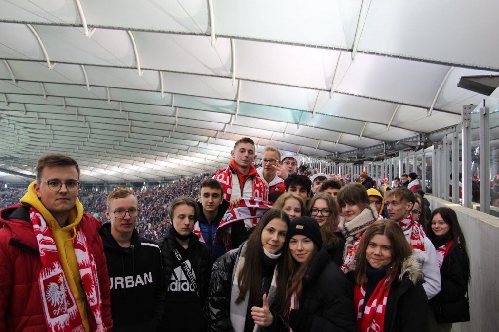 W poniedziałkowy wieczór grupa 35 uczniów Ekonomika wraz z opiekunami (p. Mariuszem Chorchosem, p. Dominikiem Szulińskim oraz p. Arkadiuszem Borawskim) była na Stadionie Narodowym na meczu Eliminacji MŚ Polska – Węgry ![]()