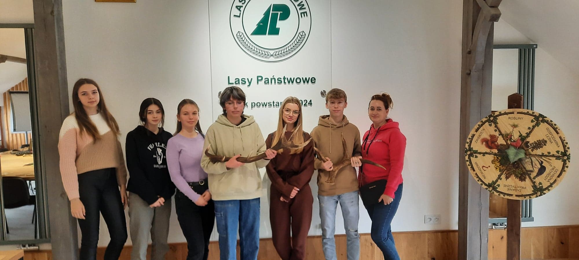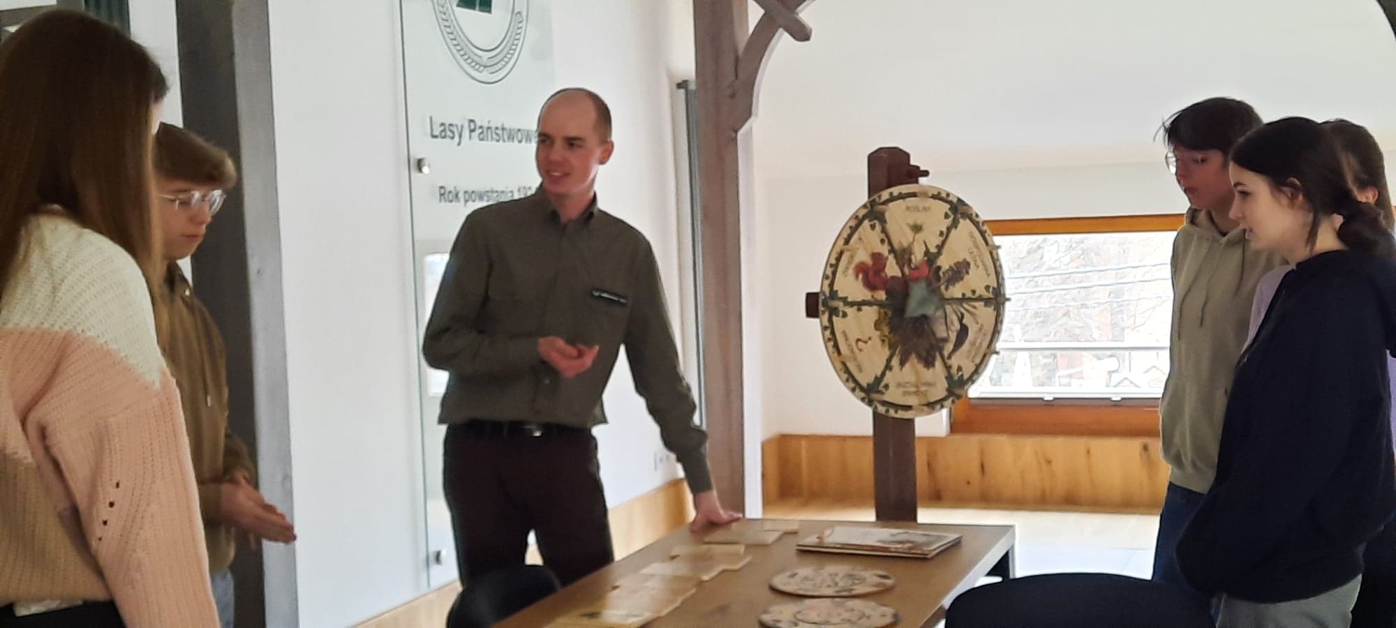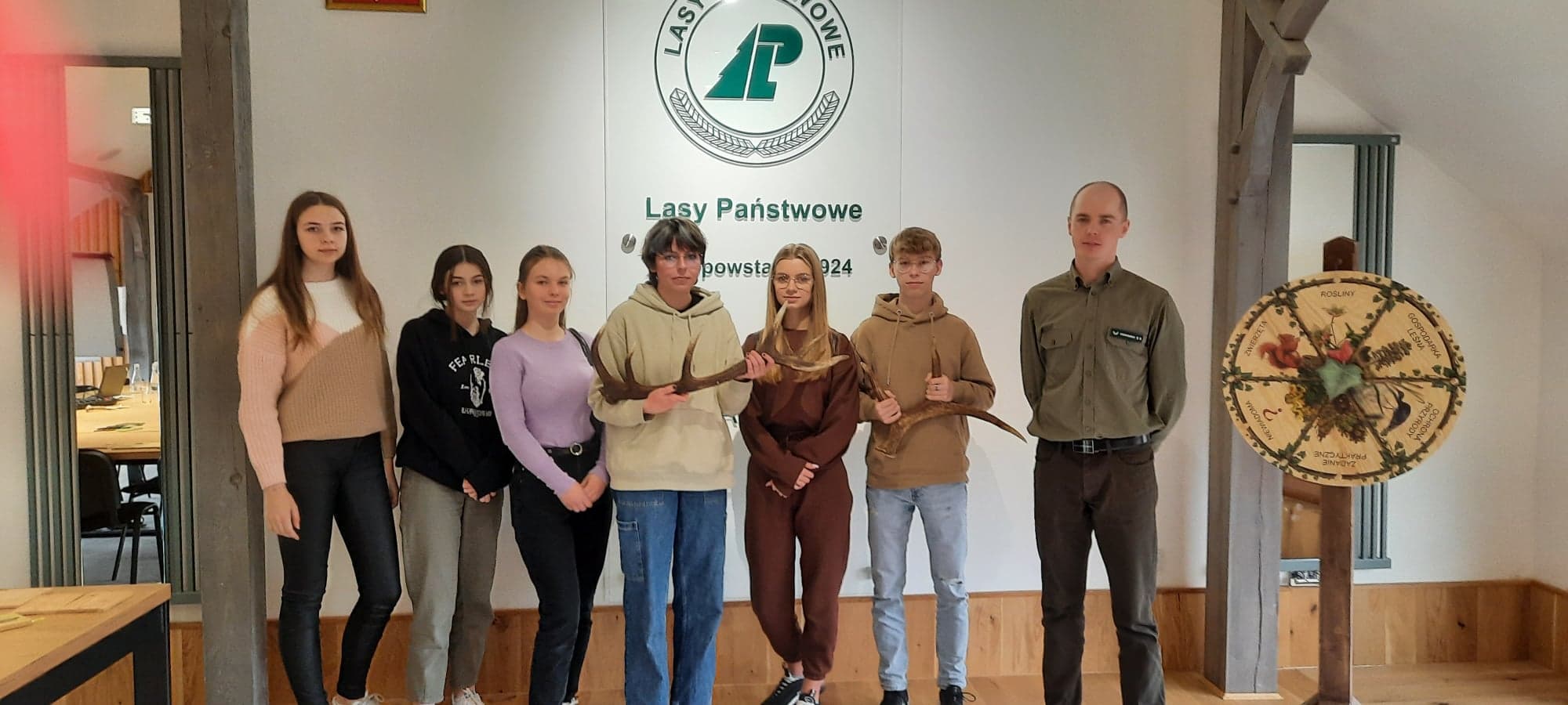 Z okazji Międzynarodowego Dnia Lasów obchodzonego 26 marca, grupa młodzieży z klasy 2TE wzięła udział w ogólnopolskiej akcji społecznej pn. „Spacer z leśnikiem”. Akcja ma na celu popularyzację wiedzy leśnej z różnych jej dziedzin. Ciekawe zajęcia edukacyjne przeprowadził dla nas w biurze Nadleśnictwa Ostrów Mazowiecka pan Albert Borkowski. Mieliśmy okazję obejrzeć dwie prezentacje multimedialne na temat: ” Jeleniowatych” i „Jak bezpiecznie korzystać z lasów „. Pan Albert udzielał nam odpowiedzi na nurtujące nas pytania z zakresu leśnictwa. W drugiej części naszych zajęć zagraliśmy w koło fortuny, odpowiadając na pytania z zakresu ekologii, ochrony środowiska i wiedzy leśnej. Dla zwycięzców czekały nagrody. Na koniec naszego spotkania odbyliśmy krótki spacer po terenie Nadleśnictwa Ostrów Mazowiecka. Dziękujemy za miło spędzony czas i prosimy o więcej.