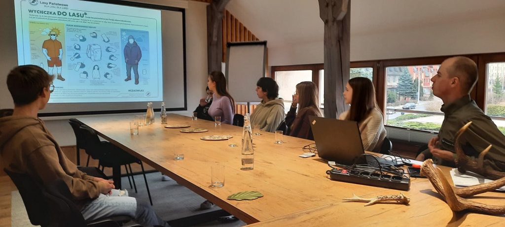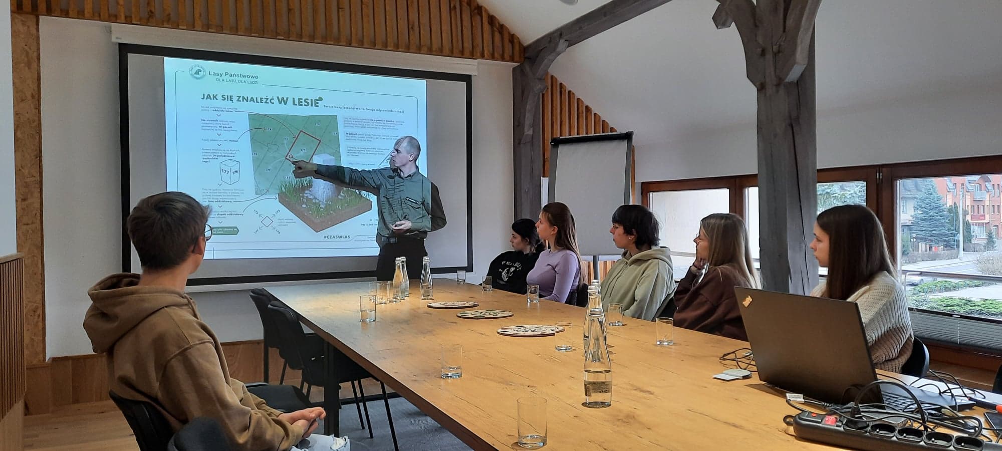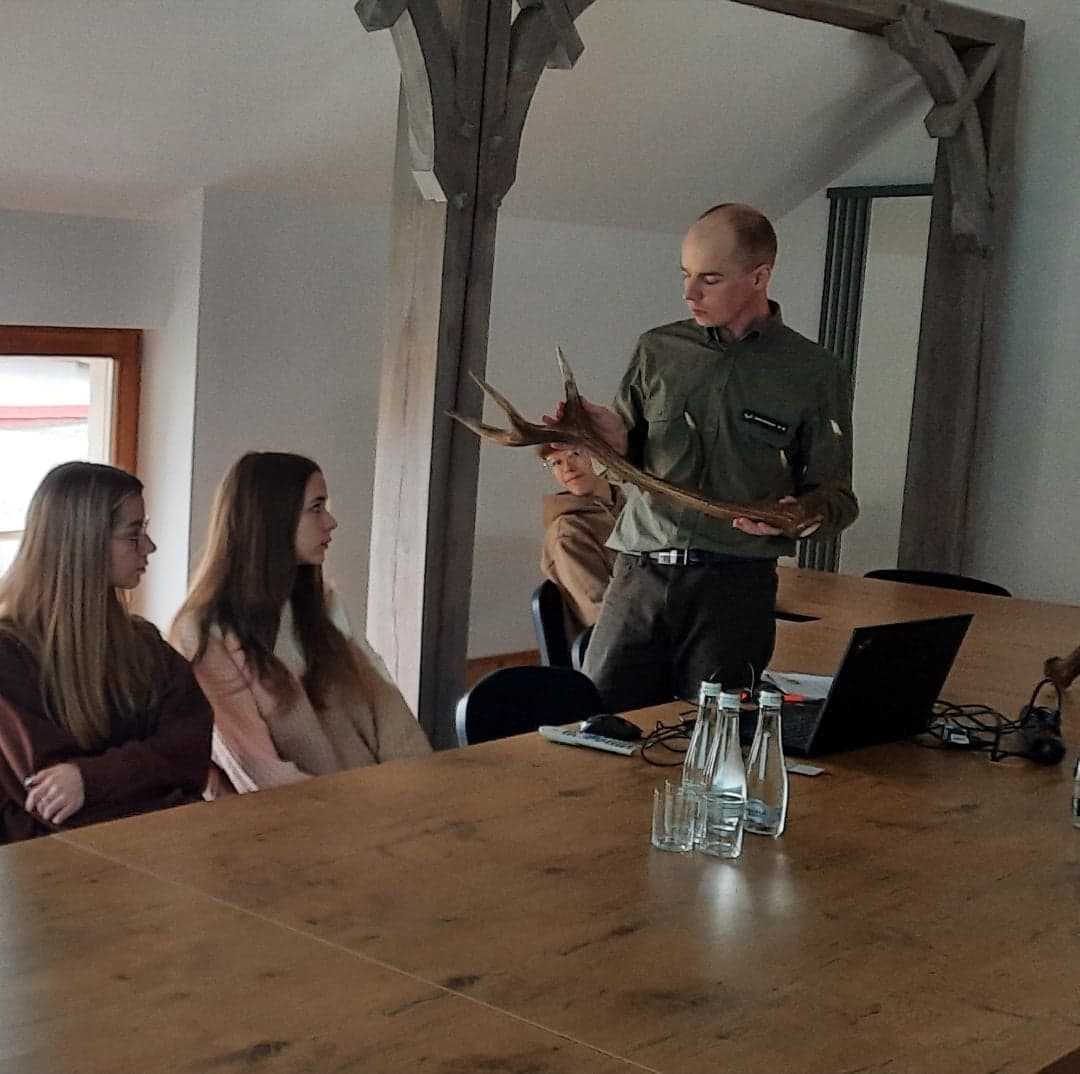 Z okazji Międzynarodowego Dnia Lasów obchodzonego 26 marca, grupa młodzieży z klasy 2TE wzięła udział w ogólnopolskiej akcji społecznej pn. „Spacer z leśnikiem”. Akcja ma na celu popularyzację wiedzy leśnej z różnych jej dziedzin. Ciekawe zajęcia edukacyjne przeprowadził dla nas w biurze Nadleśnictwa Ostrów Mazowiecka pan Albert Borkowski. Mieliśmy okazję obejrzeć dwie prezentacje multimedialne na temat: ” Jeleniowatych” i „Jak bezpiecznie korzystać z lasów „. Pan Albert udzielał nam odpowiedzi na nurtujące nas pytania z zakresu leśnictwa. W drugiej części naszych zajęć zagraliśmy w koło fortuny, odpowiadając na pytania z zakresu ekologii, ochrony środowiska i wiedzy leśnej. Dla zwycięzców czekały nagrody. Na koniec naszego spotkania odbyliśmy krótki spacer po terenie Nadleśnictwa Ostrów Mazowiecka. Dziękujemy za miło spędzony czas i prosimy o więcej.