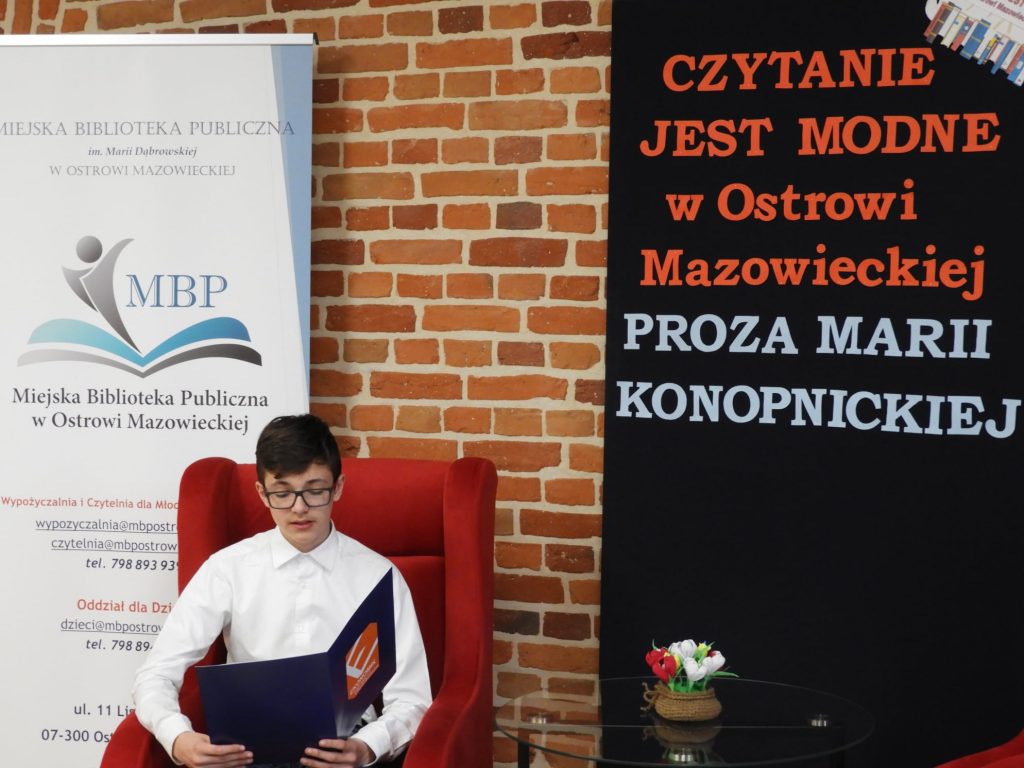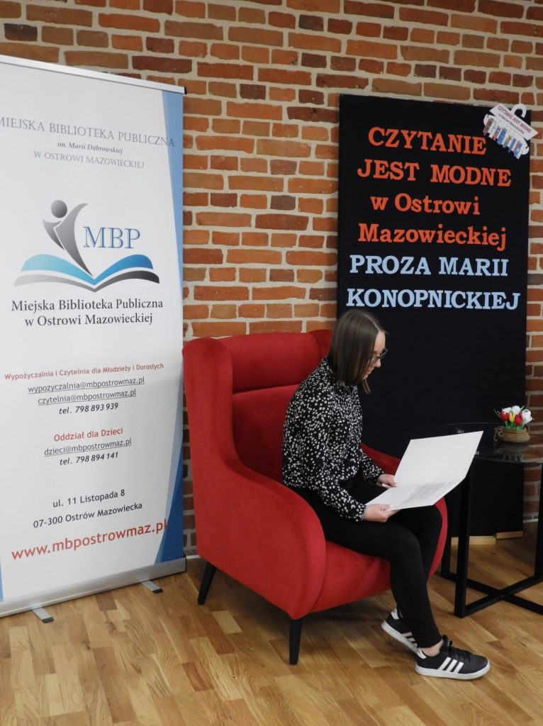 Już po raz piąty wzięliśmy udział w akcji Czytanie jest Modne, którą zorganizowała Miejska Biblioteka Publiczna w Ostrowi Mazowieckiej. W tym roku uczestnicy konkursu prezentowali wybrane przez siebie fragmenty prozy Marii Konopnickiej- Patronki 2022 roku.