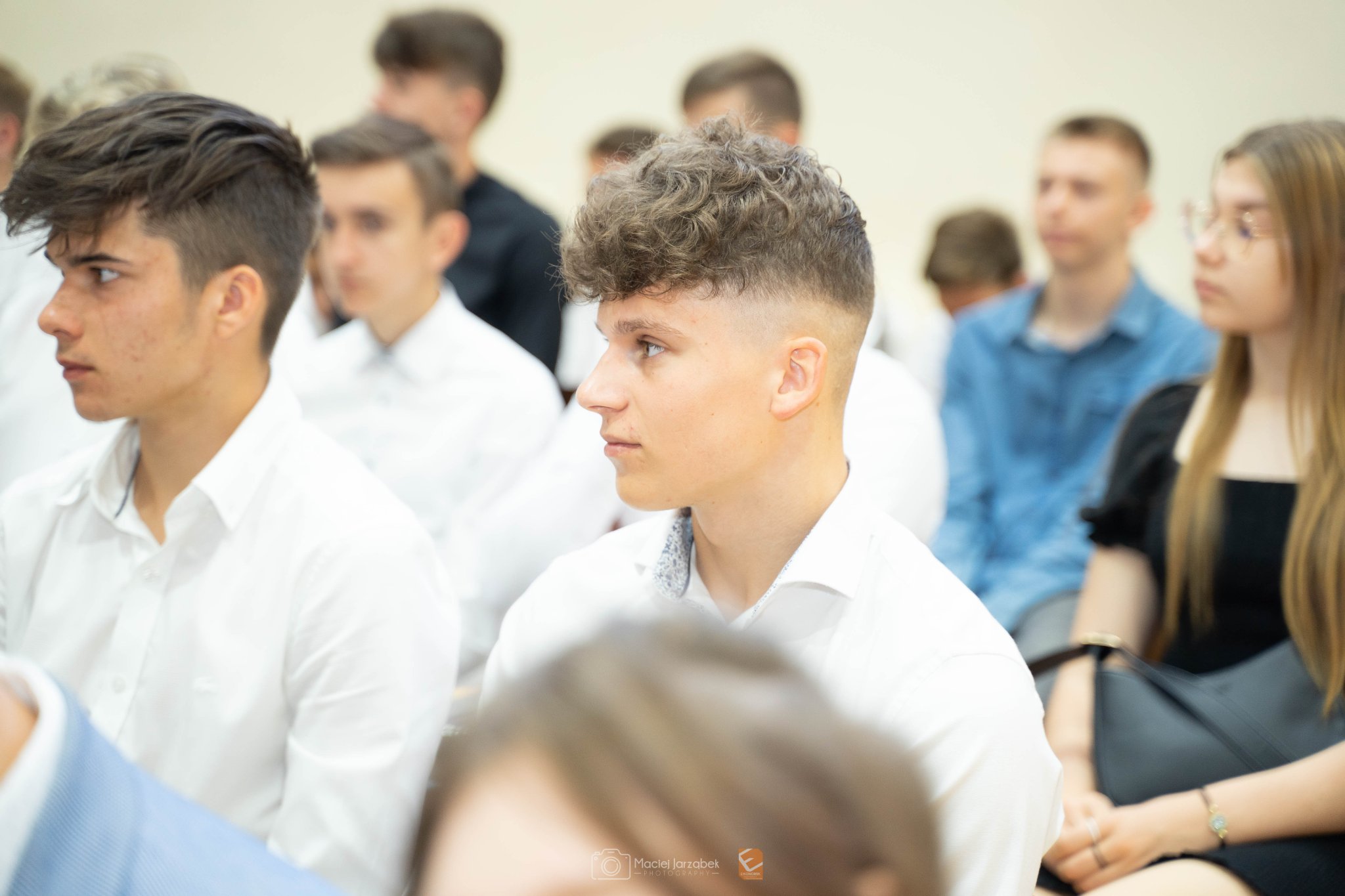 Część oficjalną uroczystości zakończyły przemówienia zaproszonych gości połączone z życzeniami udanych i bezpiecznych wakacji, pełnych wrażeń, aby zarówno nauczyciele jak i uczniowie nabrali siły oraz energii na czekające ich od września wyzwania. Pan Dyrektor Bogusław Konrad podsumował mijający rok szkolny, dziękując za pracę uczniom, nauczycielom i pracownikom szkoły. W imieniu społeczności uczniowskiej uczynił to Igor Ziemczyk –Przewodniczący Samorządu Uczniowskiego. Uroczystość zakończył montaż słowno-muzyczny oraz prezentacje multimedialne.