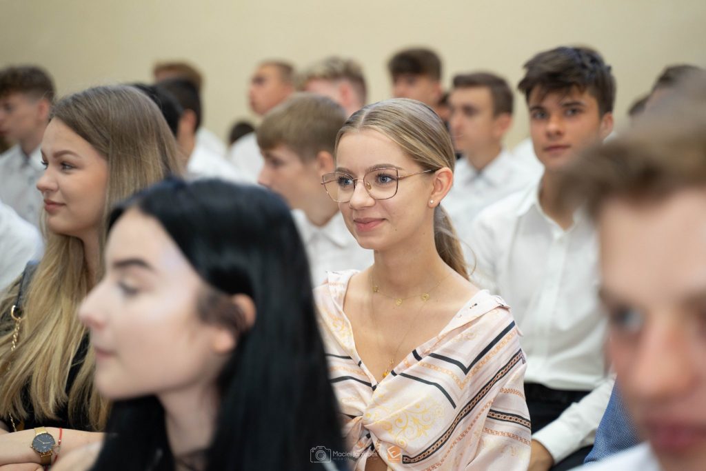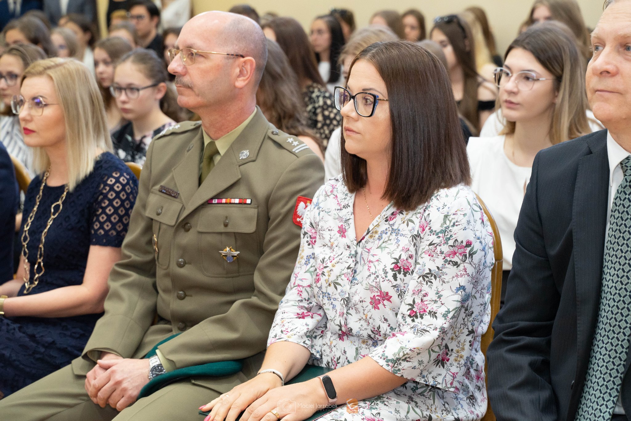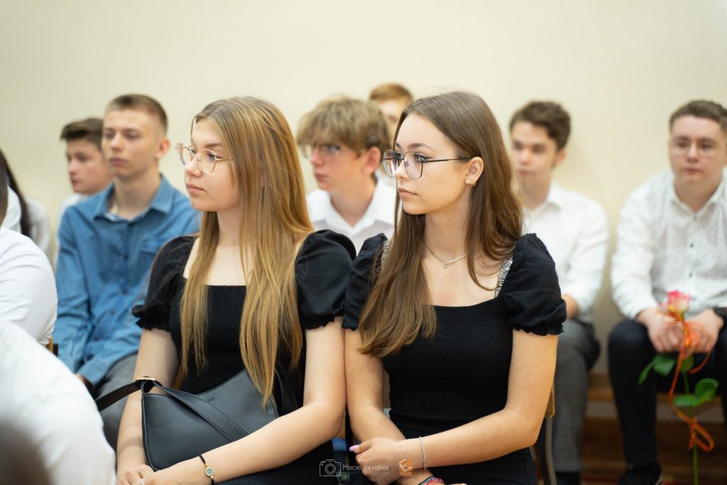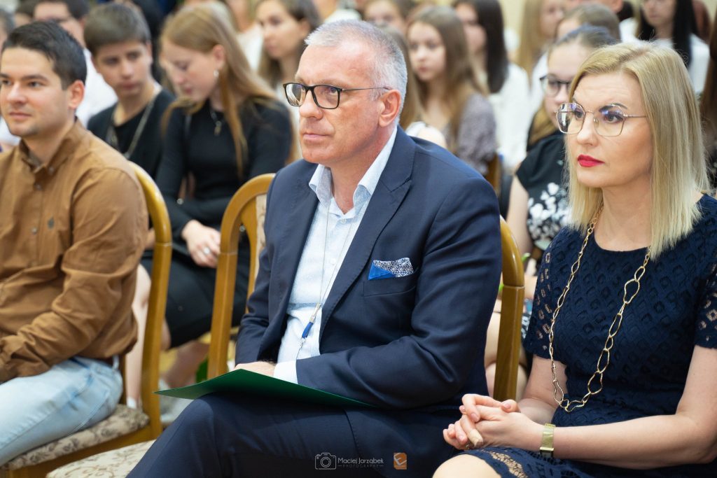 Punktualnie o godzinie 9.15 rozpoczęło się uroczyste zakończenie roku szkolnego. Pan Dyrektor Bogusław Konrad przywitał uczniów, rodziców, nauczycieli, pracowników szkoły oraz zaproszonych gości: Panią Dorotę Subdę – Przewodniczącą Rady Powiatu Ostrowskiego, Pana Dariusza Kołodziejskiego- Wiceprezesa Zarządu Banku Spółdzielczego w Ostrowi Mazowieckiej, Panią Katarzynę Dajnowicz reprezentującą Stowarzyszenie Przewoźników Ostrów Mazowiecka, Pana Adama Lubczyńskiego – przedstawiciela Muzeum – Dom Rodziny Pileckich w Ostrowi Mazowieckiej, Pana ppłk. Roberta Grodzińskiego- Zastępcę Dowódcy 22 Wojskowego Ośrodka Kartograficznego w Komorowie oraz Pana Roberta Pawlaka-Zastępcę Przewodniczącej Rady Rodziców. W czasie uroczystości uczniowie odebrali nagrody książkowe za wzorowe zachowanie, bardzo dobre wyniki w nauce, stuprocentową frekwencję oraz za osiągnięcia sportowe i konkursy przedmiotowe. Uczniowie z najwyższą średnią zostali wytypowani do stypendium Prezesa Rady Ministrów: z II Liceum Ogólnokształcącego Kinga Gajewska ze średnią ocen 5,15, a z Technikum nr 2 Paweł Brejnak ze średnią ocen 5,10. Najlepszy ekonomista Kinga Gałązka z klasy III TEB i spedytor – Paulina Gąsecka z klasy II TSH otrzymały nagrody pieniężne ufundowane przez Bank Spółdzielczy w Ostrowi Mazowieckiej oraz Stowarzyszenie Przewoźników Ostrów Mazowiecka. Wręczono również listy gratulacyjne rodzicom uczniów z najwyższą średnią w szkole. Takie podziękowanie otrzymali również rodzice Macieja Dąbrowskiego, który reprezentował szkołę na ogólnopolskich konkursach plastycznych o tematyce historycznej, zajmując wysokie miejsca na podium.