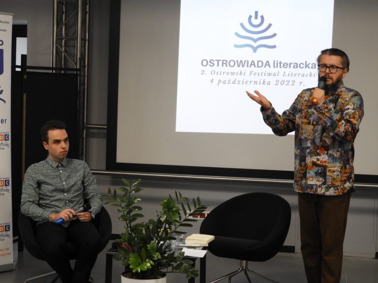 4 października uczniowie z naszej szkoły razem z opiekunem Panią Moniką Kucharczyk wzięli udział II Ostrowskim Festiwalu Literackim „Podróż do świata literatury” zorganizowanym przez Miejską Bibliotekę Publiczną w Ostrowi Mazowieckiej. Na program tego niezwykle interesującego wydarzenia kulturalnego złożyło się spotkanie autorskie z Sebastianem Brejnakiem- naszym lokalnym poetą i muzykiem oraz Ewą Lipską- wybitną polską poetką i felietonistką, mieszkająca w Krakowie, która połączyła się z nami online. Całość poprowadził Cezary Polak, ostrowianin, dziennikarz Radia Dla Ciebie. Poeci opowiedzieli o różnych ciekawych historiach związanych ze swoim warsztatem twórczym dotyczącym powstania książki „Wirujący ogon antylopy”.