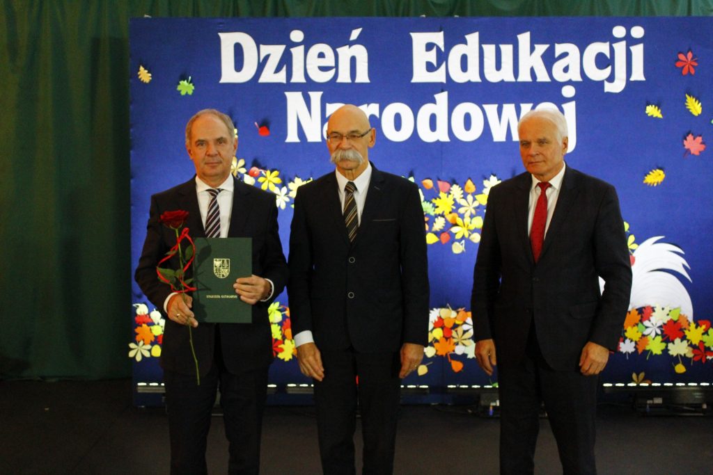 W tym roku szkolnym powiatowe obchody Dnia Edukacji Narodowej odbyły się w Zespole Szkół Nr 1 w Ostrowi Mazowieckiej. Była to okazja do podziękowania wszystkim pracownikom oświaty za trud włożony w edukację i wychowanie młodych ludzi. Pan Starosta Zbigniew Chrupek wręczył nauczycielom oraz dyrektorom placówek oświatowych nagrody przyznane przez Zarząd Powiatu w Ostrowi Mazowieckiej. Wśród nagrodzonych nie zabrakło również nas! Nagrodę z rąk Starosty otrzymali: Pan Bogusław Konrad – dyrektor Zespołu Szkół nr 2, Pani Oksana Kowalczuk – nauczycielka języka angielskiego oraz Pan Robert Błażyński – nauczyciel przedmiotów zawodowych. Nagrodzonym gratulujemy i życzymy dalszych sukcesów – zarówno w życiu osobistym, jak i zawodowym.
