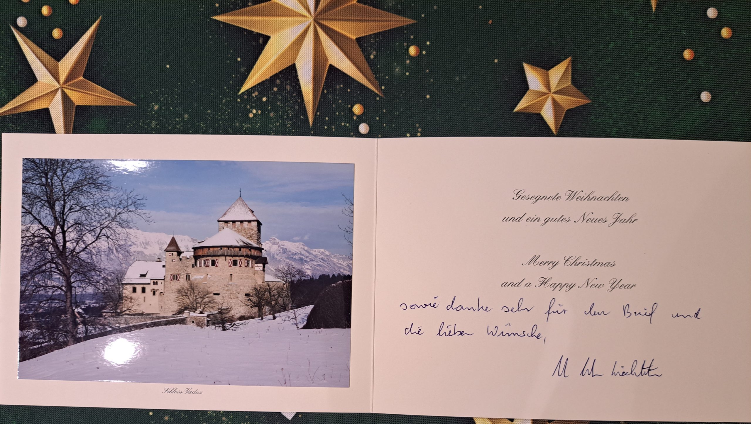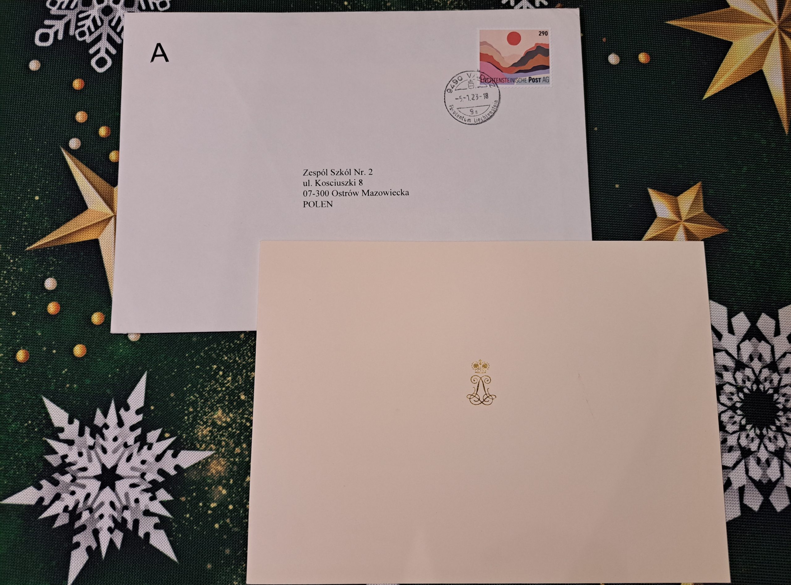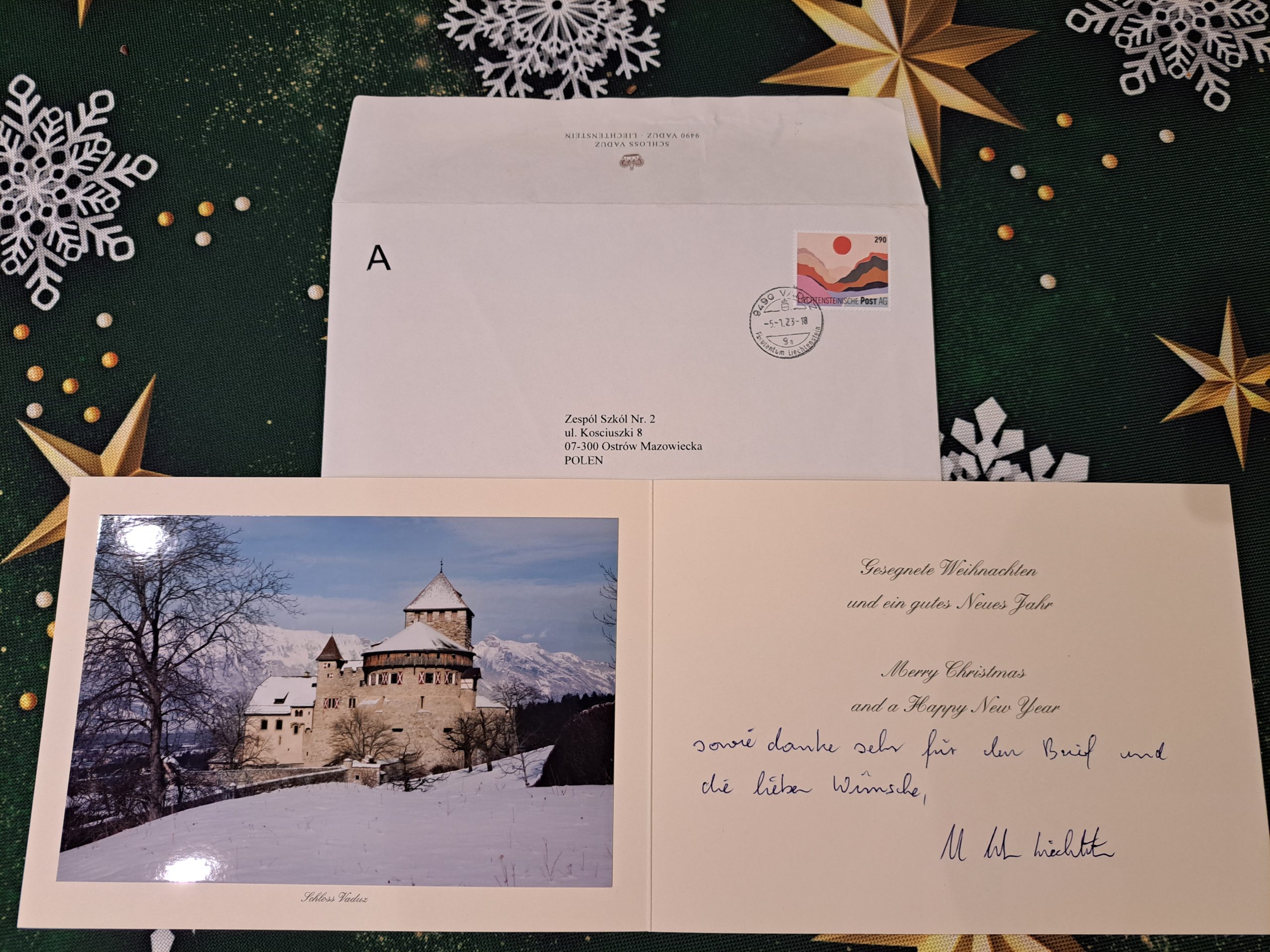 W skrzynce pocztowej naszej szkoły pojawiła się przesyłka z najmniejszego państwa niemieckojęzycznego. Książę Liechtensteinu odpowiedział uczestnikom projektu, przesyłając pozdrowienia i świąteczne życzenia. Serdecznie dziękujemy za pozytywny odbiór naszej inicjatywy i zaangażowanie w akcję.