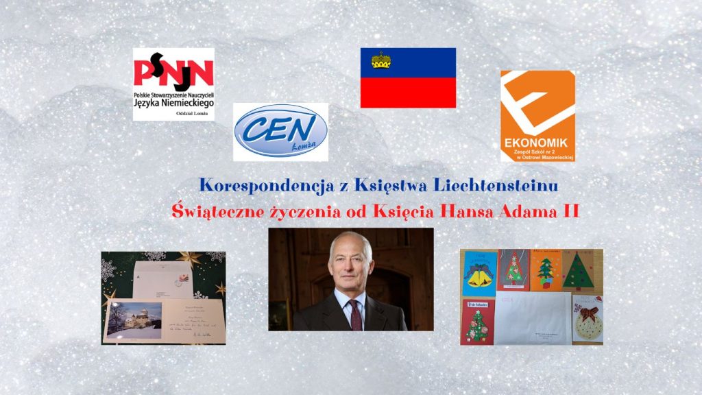 Z okazji Świąt Bożego Narodzenia uczniowie klasy I TS i I TI wysłali kartki świąteczne z życzeniami do Księcia Liechtensteinu Hansa Adama II – o tym pisaliśmy już wcześniej.