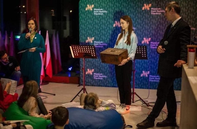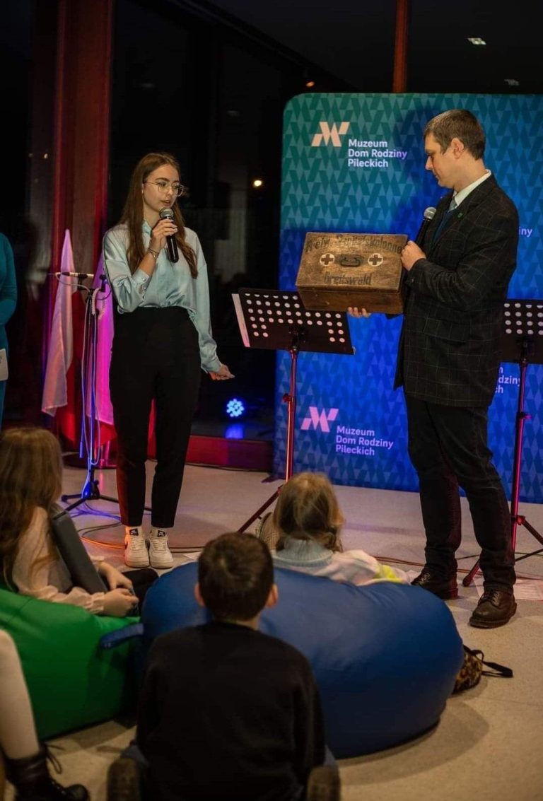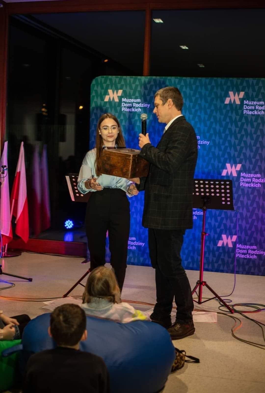 13.01 odbyło się w Muzeum Dom Rodziny Pileckich kolędowanie. Podczas tego wydarzenia uczennica naszej szkoły Martyna Gumiężna, laureatka pierwszej edycji konkursu „Pamiątki kalejdoskopem przeszłości”, przekazała do zbiorów muzeum apteczkę swojego pradziadka Leopolda Godlewskiego. Uczennicy towarzyszyła pani Urszula Zadroga. Naszą szkołę godnie reprezentował również przewodniczący SU Igor Ziemczyk, który akompaniował śpiewającym artystom.