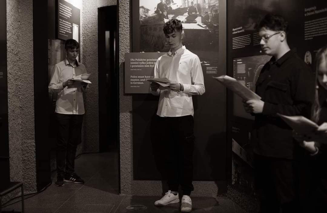 Uczniowie Ekonomika: Franciszek Zaniewski kl. II LO i Jakub Kowalczyk kl. II TE wraz z P. Urszulą Zadrogą wzięli udział w czytaniu performatywnym Raportu Witolda Pileckiego, który pokazuje dramatyczne losy więźniów obozu Auschwitz.
