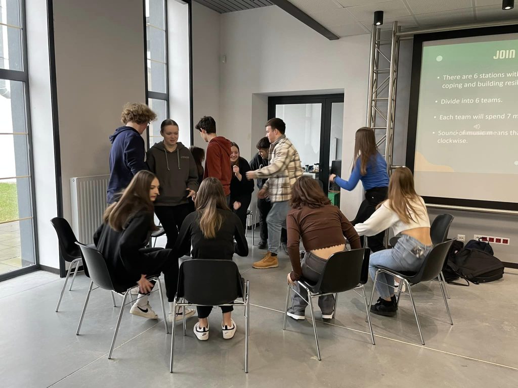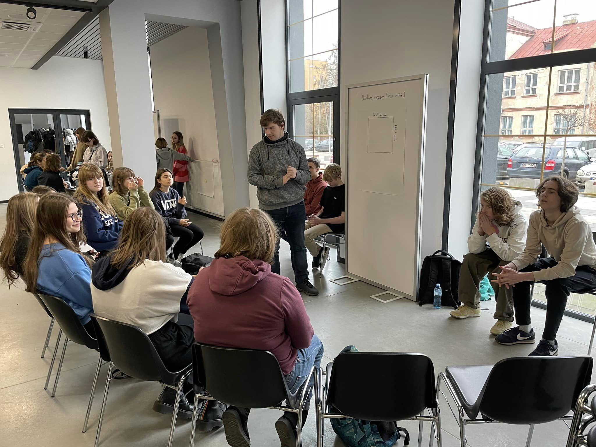 Projekt “Leave pressure – Live pleasure” to spotkanie młodzieży licealnej z Polski i Słowacji, mające na celu wzmacnianie ich odporności psychicznej. Uczestnicy 5 dni spędzili w naszym mieście, biorąc udział w warsztatach psychologicznych wzmacniających ich kompetencje radzenia sobie ze stresem oraz w praktyce doświadczali różnych aktywności stanowiących profilaktykę zdrowia psychicznego. Ostatniego dnia młodzież podzieliła się swoim doświadczeniem z uczniami naszej szkoły. W spotkaniu, które odbyło się 8 lutego w Starej Elektrowni, uczestniczyli Pan Dyrektor Bogusław Konrad oraz uczniowie klasy I LO i I TH z opiekunami Panią Moniką Kucharczyk, Panią Elizą Szabłowską oraz Panią Małgorzatą Orłowską-Mrugacz. Było to bardzo ciekawe doświadczenie międzykulturowe, przyjemnie i pożytecznie spędzony czas oraz świetna zabawa.
