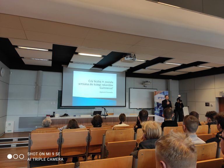W dniu 14 marca 2023r. 28-osobowa grupa uczniów z Technikum Nr 2 im. Powstańców Styczniowych kształcąca się w zawodzie technik informatyk uczestniczyła w programie „Święta Liczby Pi” przygotowanym przez Politechnikę Białostocką. Na początku uczniowie wysłuchali wykładu dr inż. Rajmunda Stasiewicza pt. „Czy liczba π została wπisana do księgi rekordów Guinnessa?”. Prelegent zaprezentował ciekawostki matematyczne dotyczące m.in. liczb tytanicznych, czyli takich, które mają co najmniej 1000 cyfr. Kolejny wykład wygłosił student III roku PB p. Artur Łopata, który zaprezentował prawo Benforda. Prawo to może pomóc np. w znalezieniu przestępców finansowych. Po wykładach uczniowie mogli sprawdzić swoją wiedzę, biorąc udział w quizie o liczbie π.