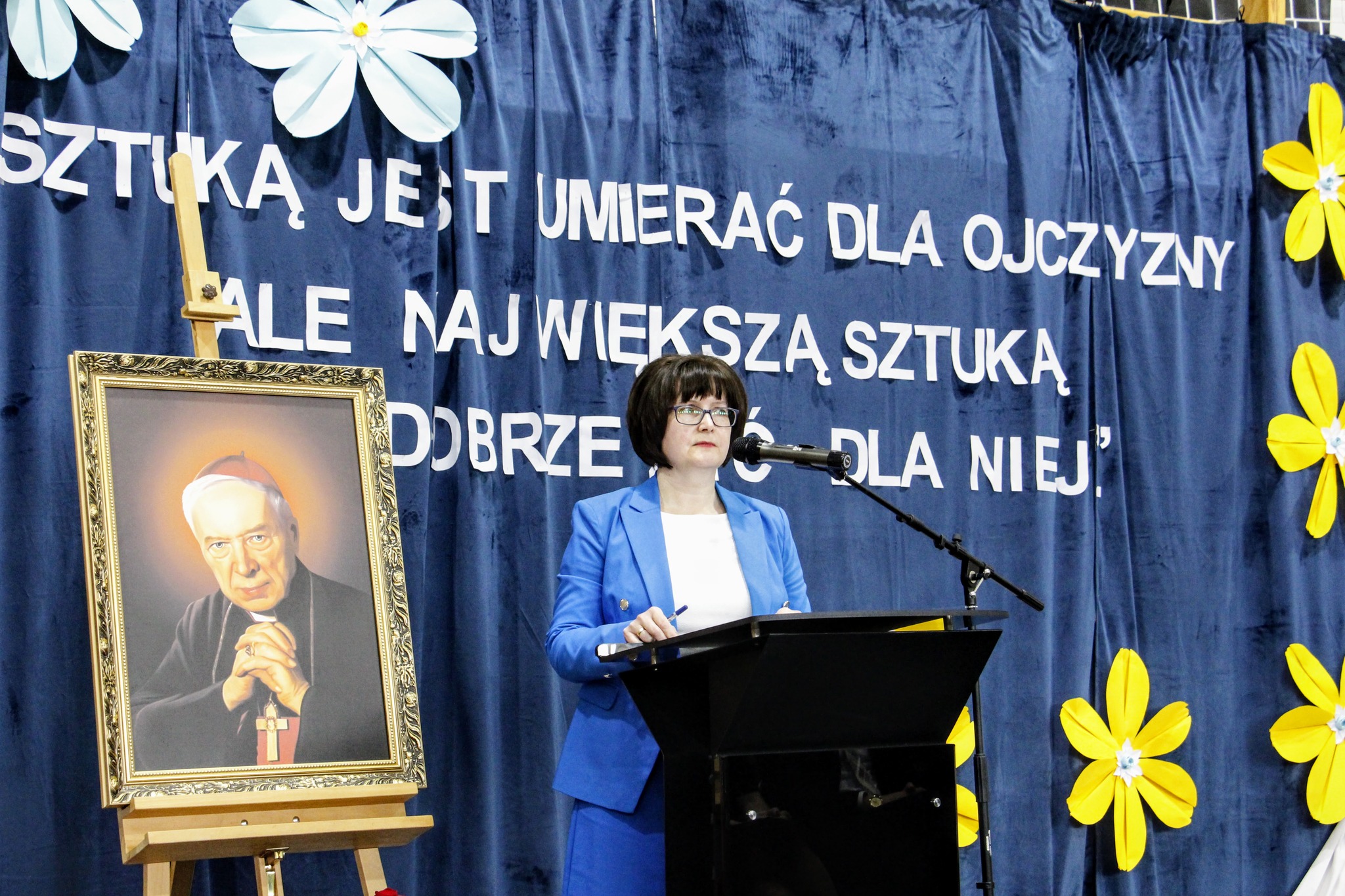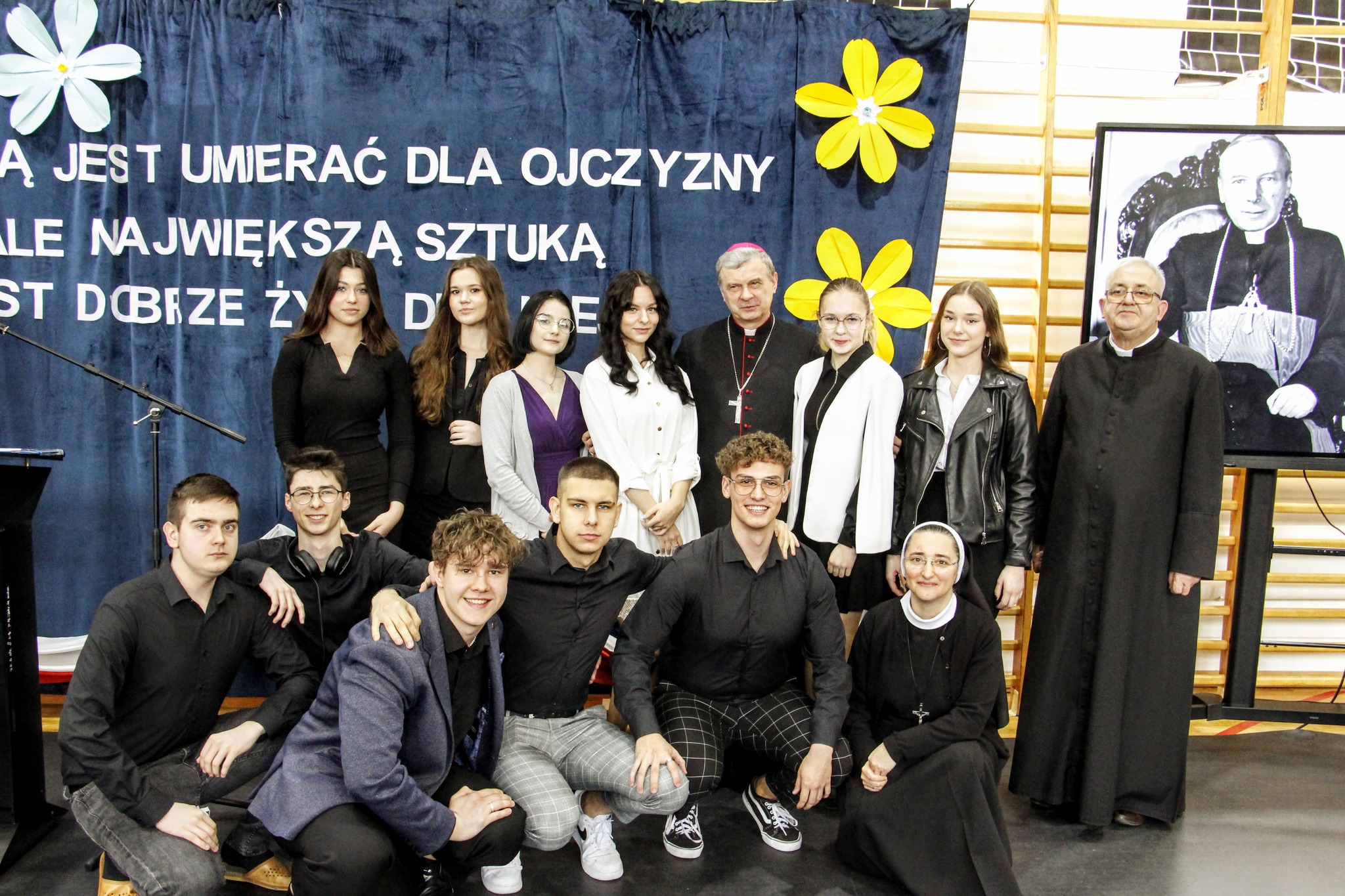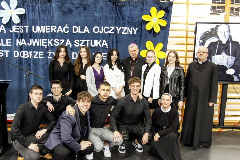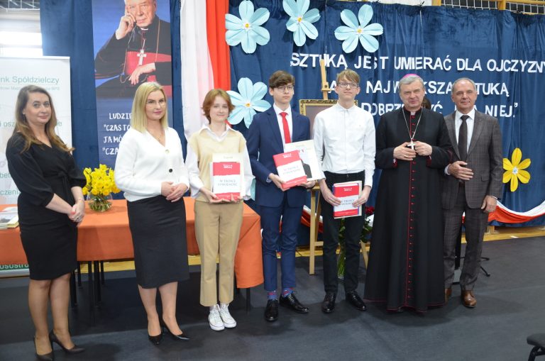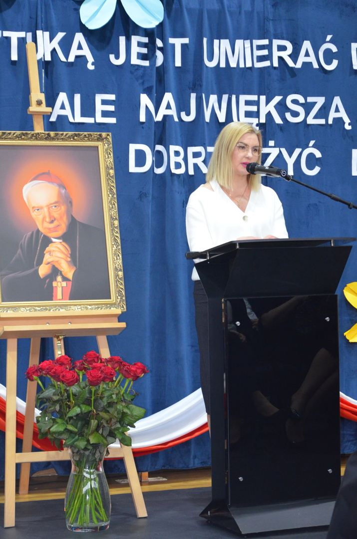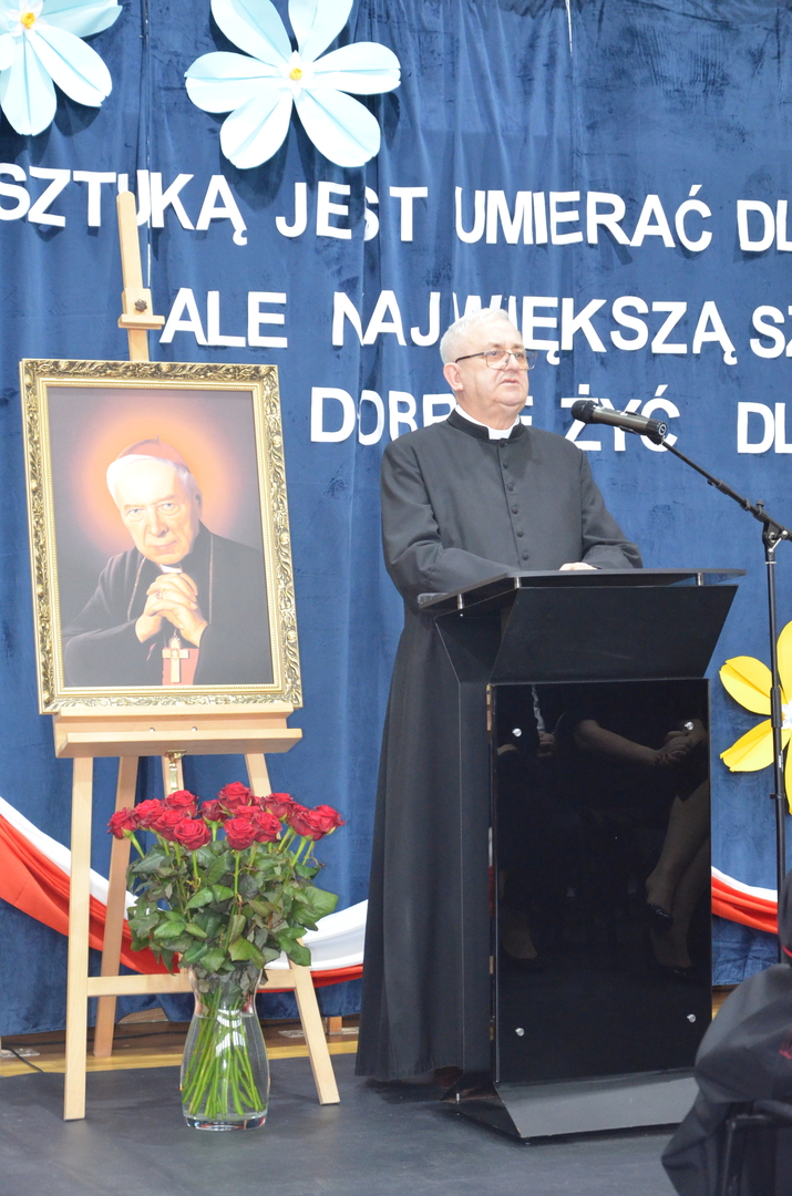 19 kwietnia br. w naszej szkole odbyła się uroczysta konferencja poświęcona bł. ks. kard. Stefanowi Wyszyńskiemu. Zaproszonych gości przywitał dyrektor szkoły pan Bogusław Konrad, który w swoim przemówieniu nawiązał do 80 tej rocznicy wybuchu powstania w getcie warszawskim, przypominając, iż było ono największym zbrojnym zrywem Żydów podczas Il wojny światowej, a zarazem pierwszym powstaniem miejskim w okupowanej Europie. Słowa wstępu na temat uroczystości wygłosił dr Jan Okuła Dziekan Dekanatu WNMP w Ostrowi Mazowieckiej. Zgromadzeni zmówili wspólną modlitwę w intencji dziesiątek tysięcy ofiar narodu żydowskiego, które zginęły 19 kwietnia 1943 roku podczas zbrojnej walki z Niemcami. W dalszej części konferencji referat pt. „ Życie i dorobek bł. ks. kard. Stefana Wyszyńskiego”, wygłosiła dr Monika Wiśniewska z Instytutu Dziedzictwa Myśli Narodowej. Referat wygłosił również ks. biskup Tadeusz Bronakowski na temat: „ Trzeźwość Narodu w nauczaniu bł. ks. kard. Stefana Wyszyńskiego”. Spotkanie było okazją do wręczenia nagród laureatom konkursu literacko – plastycznego pt. „Sztuką jest umierać dla ojczyzny, ale największą sztuką jest dobrze żyć dla niej”. W przemówieniu zaproszonych gości głos zabrały; pani Elżbieta Lanc członek Zarządu Województwa Mazowieckiego oraz pani Dorota Subda , Przewodnicząca Rady Powiatu, które w swoim wystąpieniu złożyły serdeczne podziękowania na ręce dyrektora szkoły za kultywowanie pamięci o Kardynale Wyszyńskim. Całą uroczystość uświetniła część artystyczna w wykonaniu młodzieży przygotowanej pod kierunkiem siostry Nikodema i ks. Adama Polkowskiego.