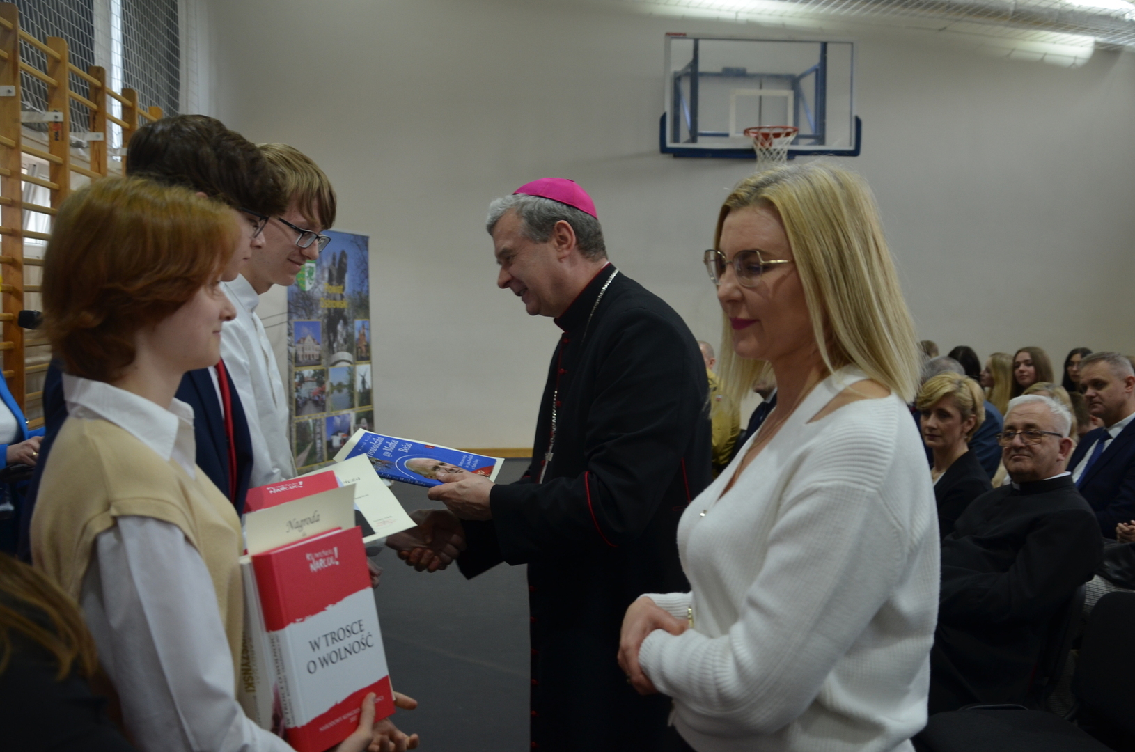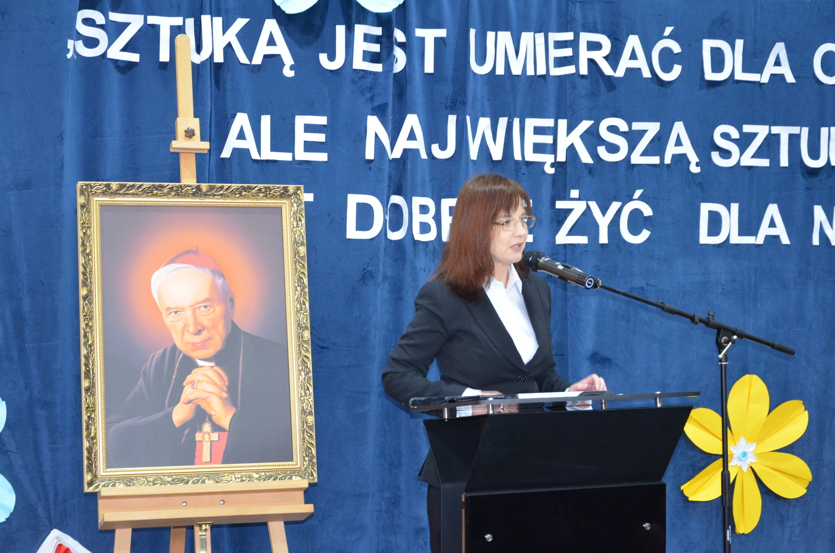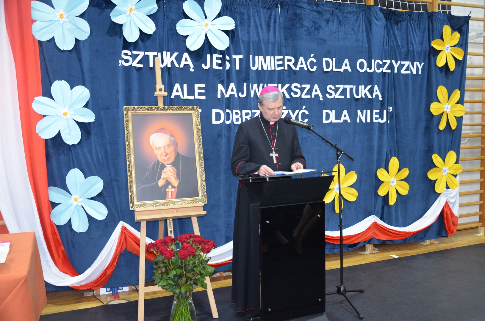 19 kwietnia br. w naszej szkole odbyła się uroczysta konferencja poświęcona bł. ks. kard. Stefanowi Wyszyńskiemu. Zaproszonych gości przywitał dyrektor szkoły pan Bogusław Konrad, który w swoim przemówieniu nawiązał do 80 tej rocznicy wybuchu powstania w getcie warszawskim, przypominając, iż było ono największym zbrojnym zrywem Żydów podczas Il wojny światowej, a zarazem pierwszym powstaniem miejskim w okupowanej Europie. Słowa wstępu na temat uroczystości wygłosił dr Jan Okuła Dziekan Dekanatu WNMP w Ostrowi Mazowieckiej. Zgromadzeni zmówili wspólną modlitwę w intencji dziesiątek tysięcy ofiar narodu żydowskiego, które zginęły 19 kwietnia 1943 roku podczas zbrojnej walki z Niemcami. W dalszej części konferencji referat pt. „ Życie i dorobek bł. ks. kard. Stefana Wyszyńskiego”, wygłosiła dr Monika Wiśniewska z Instytutu Dziedzictwa Myśli Narodowej. Referat wygłosił również ks. biskup Tadeusz Bronakowski na temat: „ Trzeźwość Narodu w nauczaniu bł. ks. kard. Stefana Wyszyńskiego”. Spotkanie było okazją do wręczenia nagród laureatom konkursu literacko – plastycznego pt. „Sztuką jest umierać dla ojczyzny, ale największą sztuką jest dobrze żyć dla niej”. W przemówieniu zaproszonych gości głos zabrały; pani Elżbieta Lanc członek Zarządu Województwa Mazowieckiego oraz pani Dorota Subda , Przewodnicząca Rady Powiatu, które w swoim wystąpieniu złożyły serdeczne podziękowania na ręce dyrektora szkoły za kultywowanie pamięci o Kardynale Wyszyńskim. Całą uroczystość uświetniła część artystyczna w wykonaniu młodzieży przygotowanej pod kierunkiem siostry Nikodema i ks. Adama Polkowskiego.