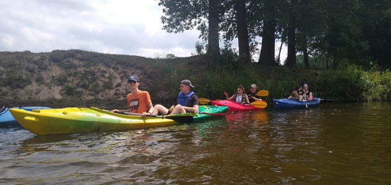 22.06.2023 o godz 7:45 ekipa 25 osobowa z Ekonomika i Kopernika wyjechała na spływ kajakowy rzeką Pisą i Narwią. Pogoda była wyśmienita do tego by kosztować przyjemności z kajakowania! Słońce za chmurami, ciepła woda więc nasze myśli już krążyły wokół wakacji! Można powiedzieć, że je oficjalnie rozpoczęliśmy! Płynęliśmy w miejsca piękne i spokojne od czasu do czasu mijając zwierzęta lub innych wypoczywających ludzi. Gdy dopłynęliśmy do celu wspólnie piekliśmy kiełbaski, rozmawialiśmy, śmialiśmy się odpoczywając po czterogodzinnym wiosłowaniu! Na koniec wspólne zdjęcie, zagaszenie ogniska i zmęczeni ale zadowoleni wróciliśmy do domu, by leczyć zbyt mocną opaleniznę! Dziękujemy s. Nikodemie, p. Sławkowi, p. Kasi i p. Ani za bycie i towarzyszenie nam w tym dobrym czasie.