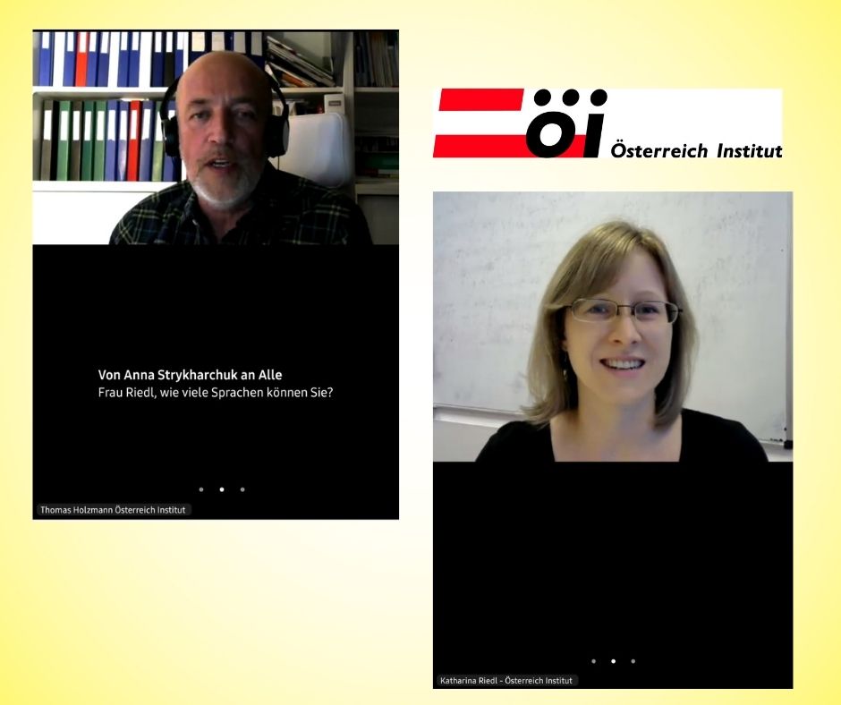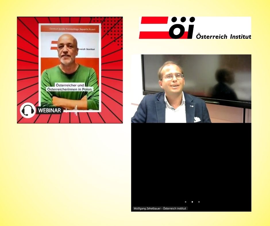 W ramach obchodów Europejskiego Dnia Języków chętni uczniowie z klasy II TI razem z panią dr J. Pecko wzięli udział w nowym cyklu spotkań Instytutu Austriackiego: „Austriacy w Polsce”. Webinar ten stał się okazją do poznania lektorów IA mieszkających od wielu lat w Polsce. Poznaliśmy ich doświadczenia i dowiedzieliśmy się, jak radzą sobie w nowym otoczeniu. Gośćmi spotkania byli Wolfgang Zehetbauer i Katharina Riedl. Moderatorem spotkania był dyrektor Instytutu Austriackiego – Thomas Holzmann. Był to wyjątkowy wieczór, pełen inspiracji i nowych spojrzeń na życie w Polsce. Z niecierpliwością czekamy na kolejne spotkanie ![]()
