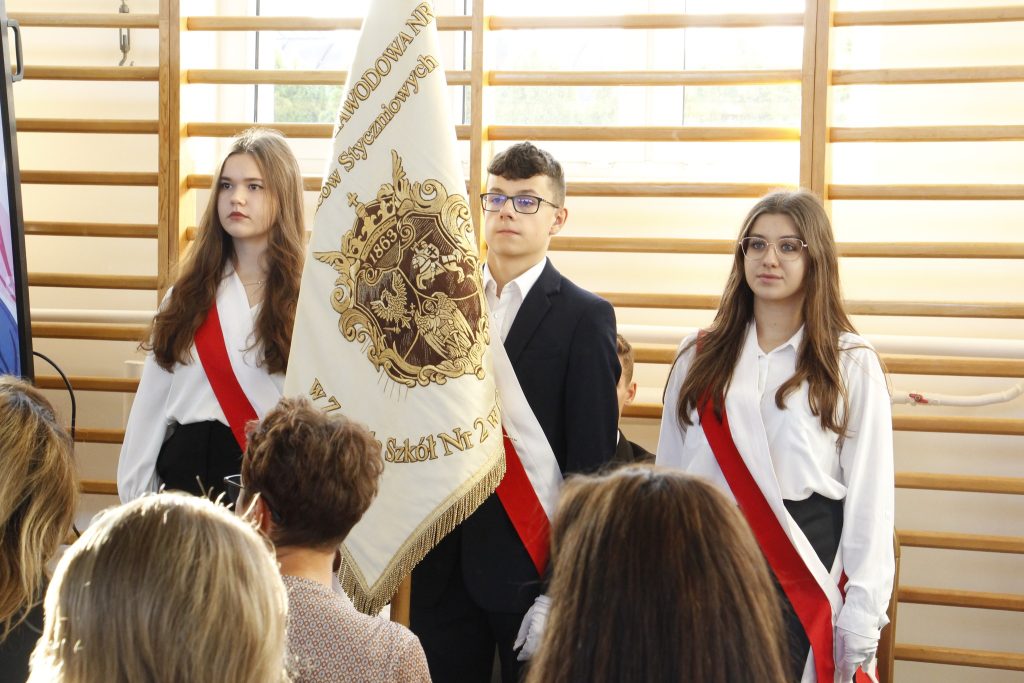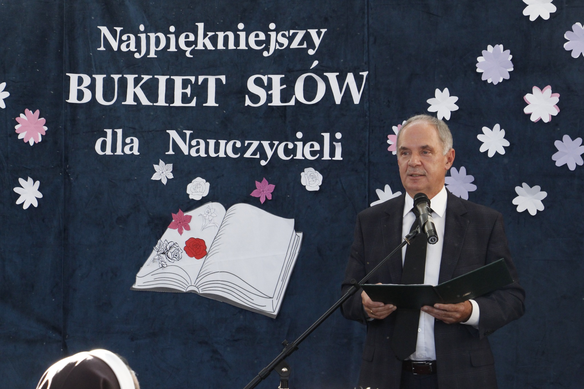W dniu 13 października mieliśmy w naszej szkole wielkie święto – cała społeczność szkolna spotykała się na wspólnym świętowaniu Dnia Edukacji Narodowej. Uroczystość uświetnili swoją obecnością wyjątkowi goście: Starosta Powiatu Ostrowskiego – Pan Zbigniew Chrupek, Przewodnicząca Rady Powiatu – Pani Dorota Subda, Dyrektor Wydziału Inwestycji i Rozwoju Powiatu oraz Przewodnicząca Rady Rodziców – Pani Urszula Waniewska, Wiceprezes Zarządu Banku Spółdzielczego w Ostrowi Mazowieckiej – Pani Agata Załęska, Komendant Powiatowy Państwowej Straży Pożarnej w Ostrowi Mazowieckiej – Pan Janusz Iwanowski.