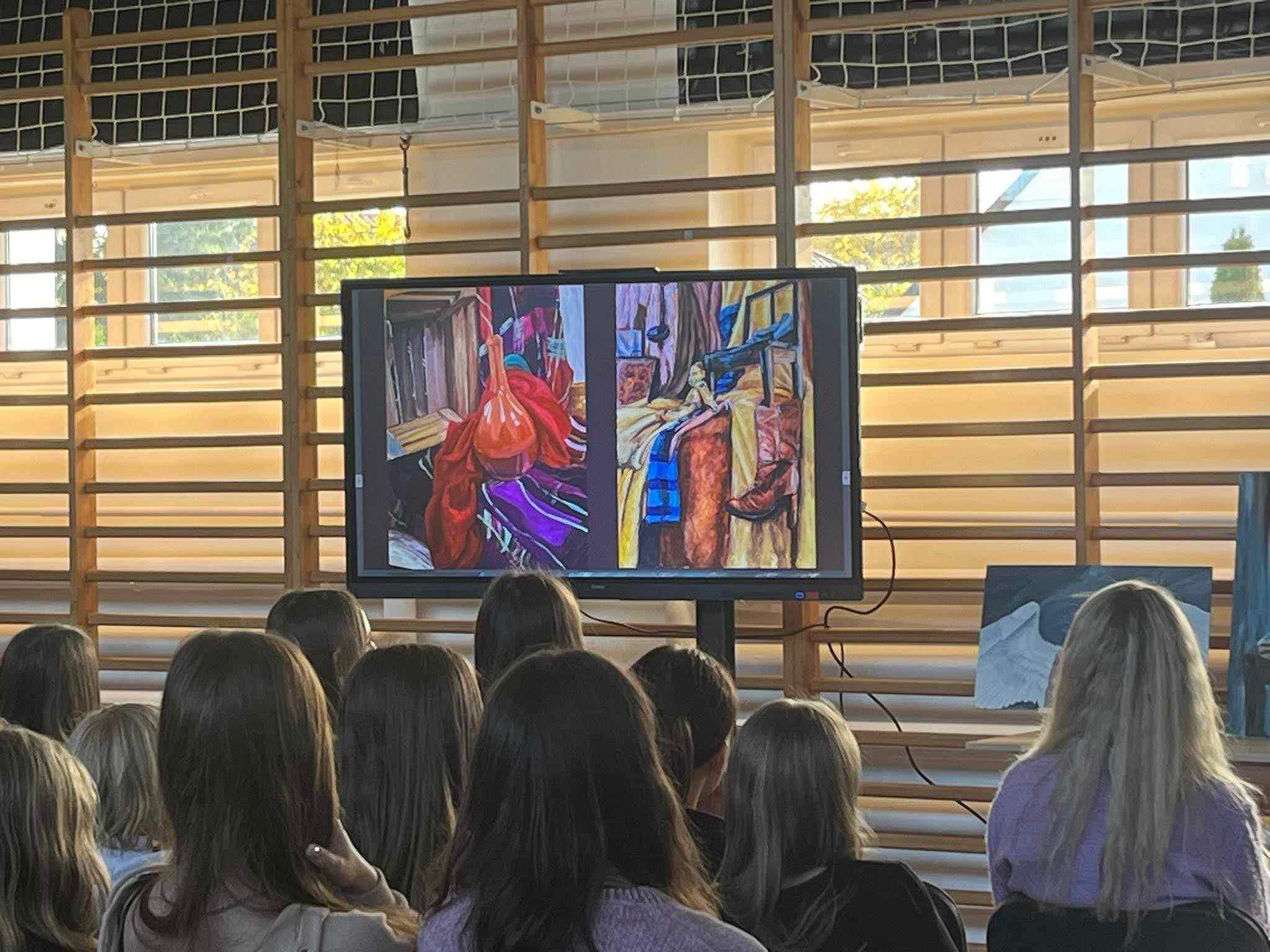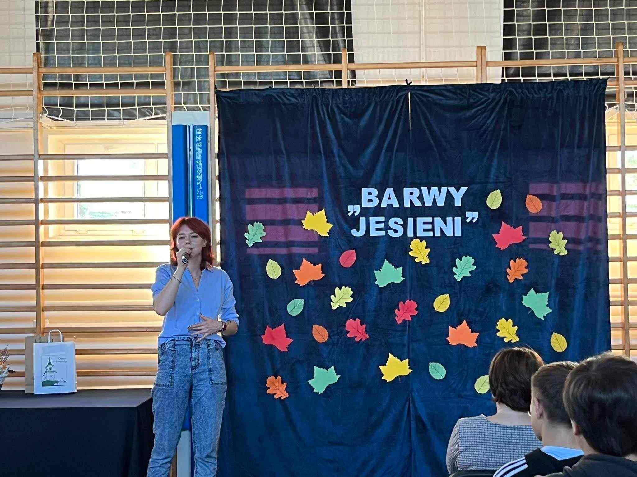 Mieliśmy także zaszczyt gościć Panią Julię Buczyńską, absolwentkę Państwowego Liceum Sztuk Plastycznych im. Wojciecha Kossaka w Łomży, aktualnie studentkę Politechniki Białostockiej na kierunku: Grafika; malarkę,muralistkę rysowniczkę, graficzkę, chórzystkę. Pani Julia przedstawiła prezentację multimedialną dotyczącą swojej pracy artystycznej, opowiedziała o pasji i miłości do sztuki. Zaprezentowała również swój talent wokalny.