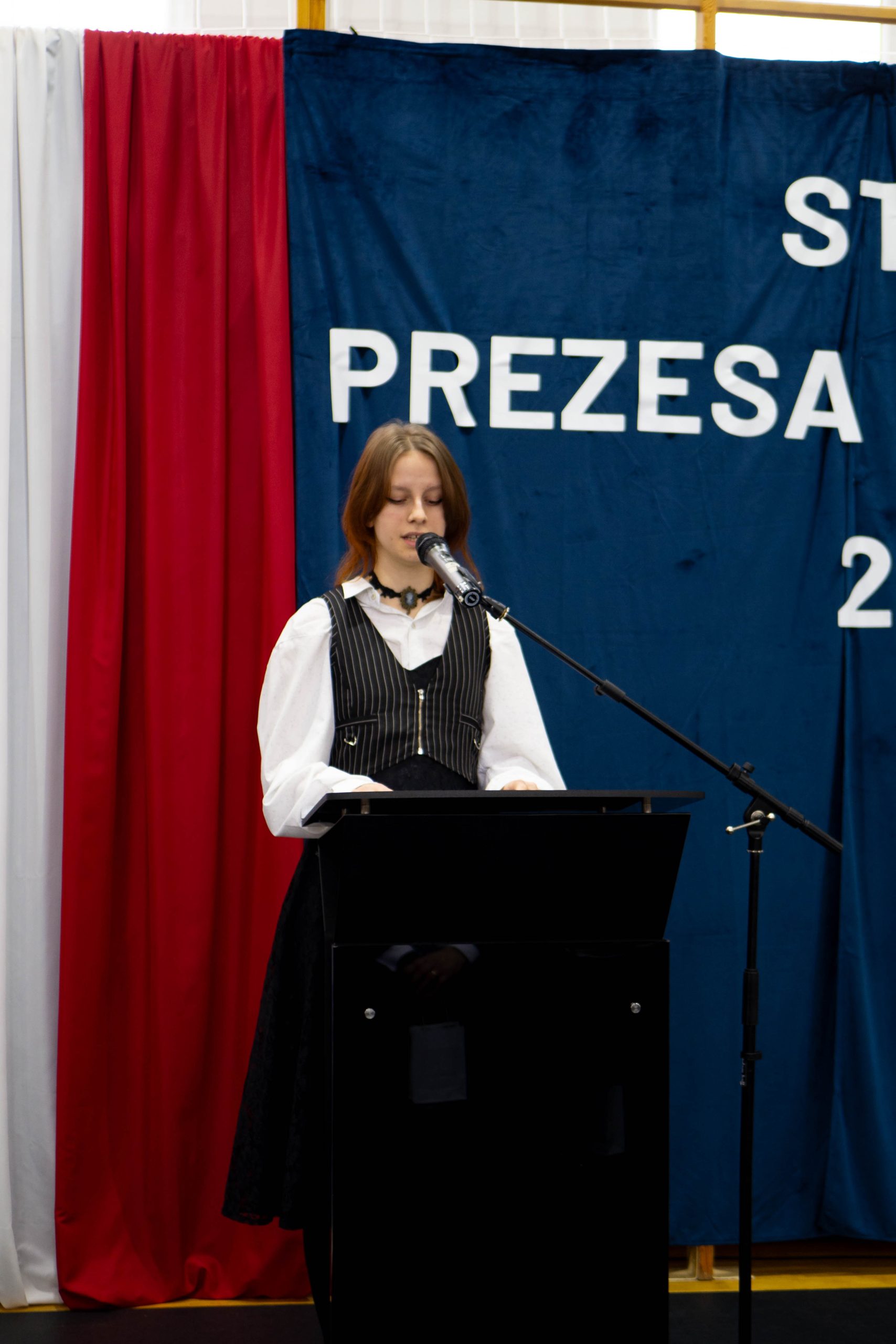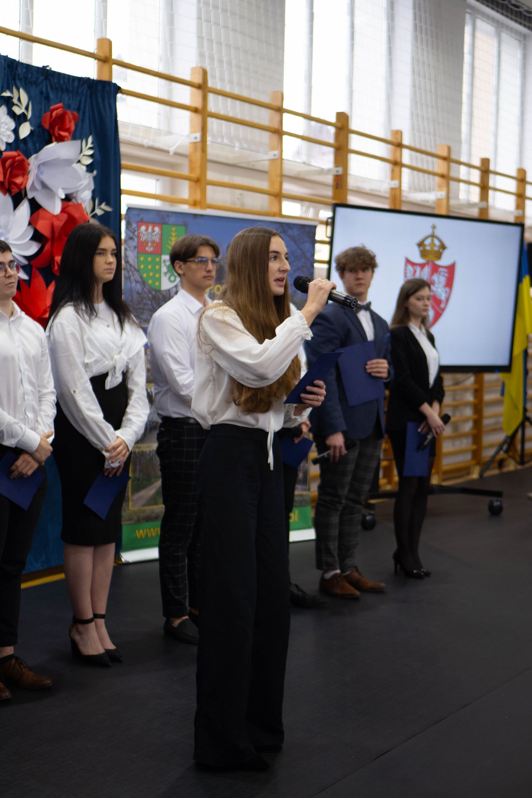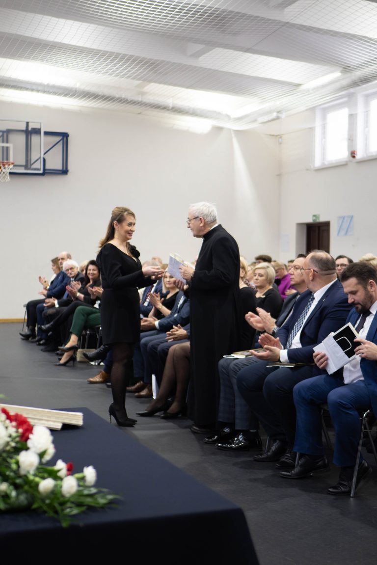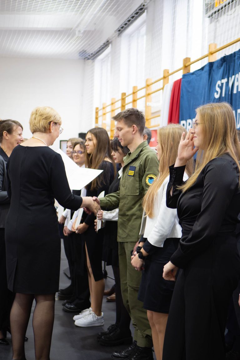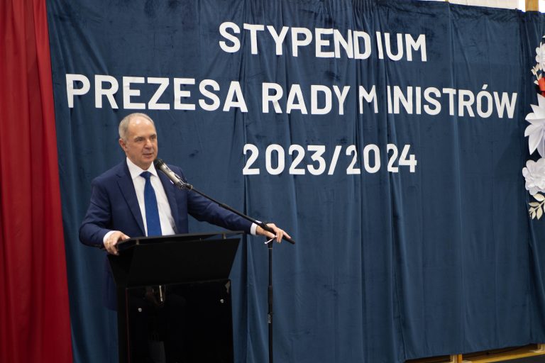 Docenienie wysiłku, jaki młody człowiek wkłada w swój rozwój, jest niezwykle ważne. Mówiła o tym w swoim wystąpieniu uczennica naszej szkoły – Maria Tułowiecka, która zabrała głos w imieniu nagrodzonych uczniów. „Szanowni Państwo, czuję się zaszczyconai wyróżniona, że mogę zabrać głos w imieniu nagrodzonych uczniów. Otrzymanie Stypendium Prezesa Rady Ministrów sprawiło, że czujemy się docenieni i jeszcze bardziej zmotywowani. Takie momenty sprawiają, iż w pełni rozumiemy mądrość zawartąw sentencji: „Per aspera ad astra” – „Przez trudy do gwiazd”. Naprawdę wierzymy, że dzięki ciężkiej pracy, determinacji, ambicjom, ale i chęci poszerzania horyzontów, zdobywania wiedzy, jesteśmy w stanie wiele osiągnąć. W tym miejscu chcieliśmy serdecznie podziękować wszystkim Państwu, którzy przyczyniliście się do naszego sukcesu, a w szczególności: dyrekcji, nauczycielom i rodzicom, za codzienną troskę o stworzenie nam warunków do rozwoju naszych talentów. Dziękujemy wszystkim tym, którzy przyczynili się do tego, że otrzymaliśmy tę nagrodę, gdyż jest ona symbolicznym aktem docenienia nas, naszej pracy. Będzie ona dla nas źródłem motywacji i bodźcem do odblokowania być może jeszcze nie w pełni wykorzystanego potencjału. Powiedziałam, że stypendium jest symbolicznym aktem uznania, jednakże – nie tylko symbolicznym, gdyż otrzymane środki z pewnością będą stanowić wsparcie podczas kontynuowania edukacji. Możemy je przeznaczyć na zakup wymarzonych pomocy naukowych, ułatwiających przyswajanie informacji, na wyposażenie zwiększające efektywność nauki, kursy rozwijające zainteresowania i pasje. Także – na książki. Bo jak to kiedyś pięknie powiedziała Ewa Szelburg – Zarembina: „Książka (…) powinna być – orężem w walce, cegłą w budowie, drogowskazem na bezdrożu, zachętą do pracy i wytchnieniem po trudzie – zwierciadłem prawdy.” I w tym zwierciadle będziemy się przeglądać. Dziękuję.”
