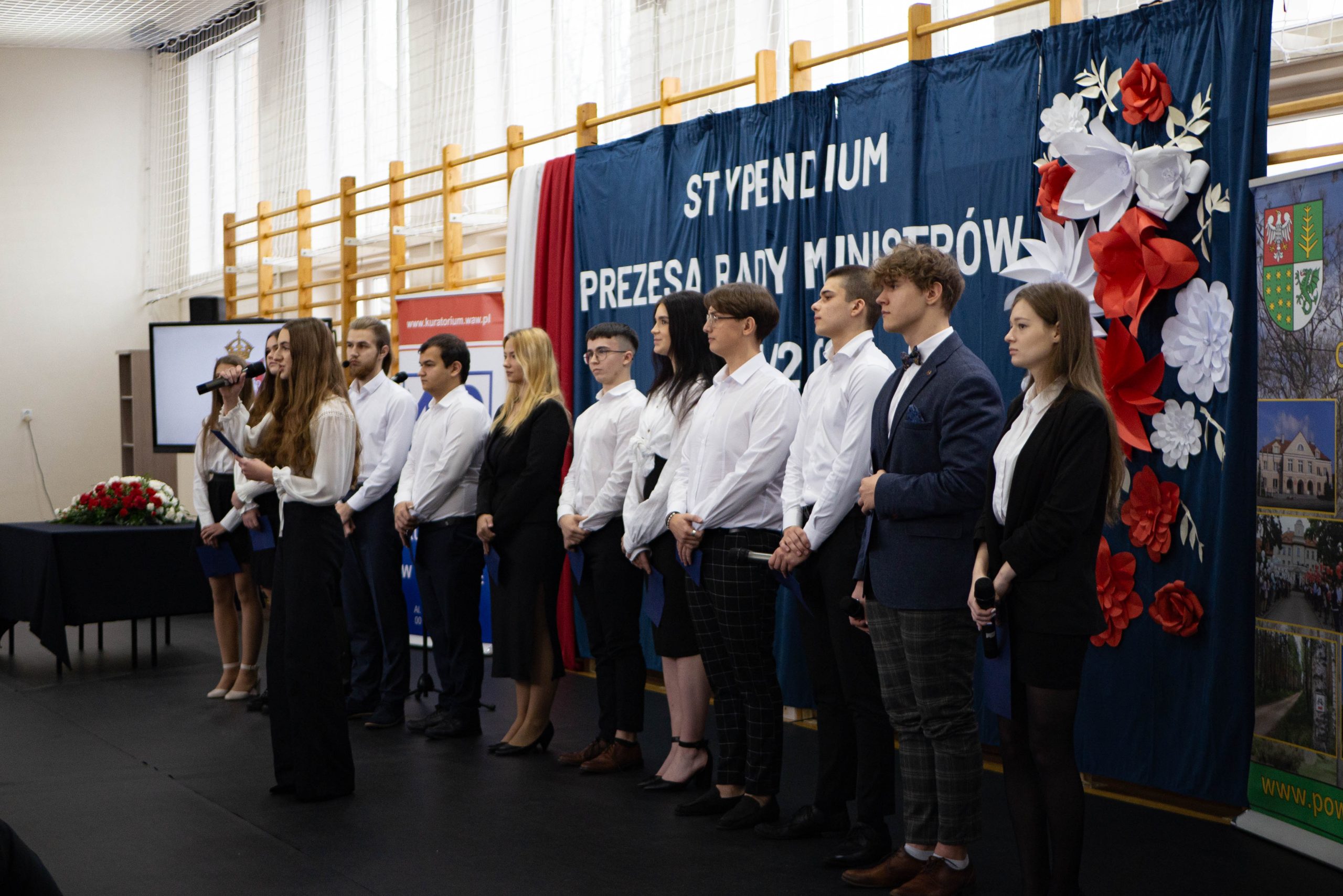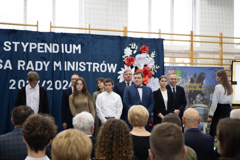 21 listopada 2023 r. w naszej szkole odbyła się uroczystość wręczenia Stypendiów Prezesa Rady Ministrów dla najzdolniejszych uczniów z terenu podległego ostrołęckiej delegaturze Mazowieckiego Kuratorium Oświaty. Uroczystość prowadziła Pani Iwona Murawska – starszy wizytator Delegatury w Ostrołęce.