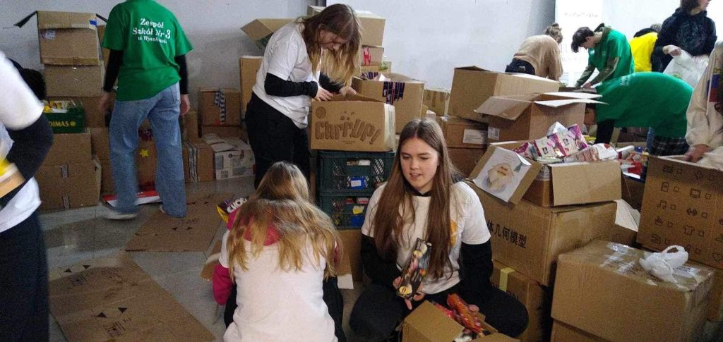 Grupa wolontariuszek z kl. I LOA z s. Nikodemą wzięła udział w wielkim pakowaniu paczek świątecznych dla Polaków mieszkających na Litwie i Łotwie. Razem z innymi wolontariuszami segregowałyśmy produkty i rozdzielałyśmy do kartonów, które trafią do osób potrzebujących. Spora grupa naszych Wolontariuszek wyjedzie w tym roku, by wręczyć przygotowane paczki na Litwie i Łotwie. Akcja PACZKA NA KRESY jest dwa razy w roku, zapraszamy wszystkich chętnych do współpracy!