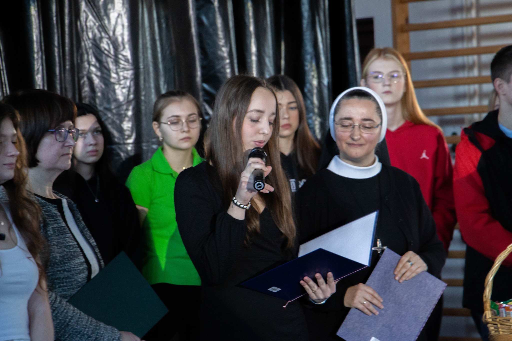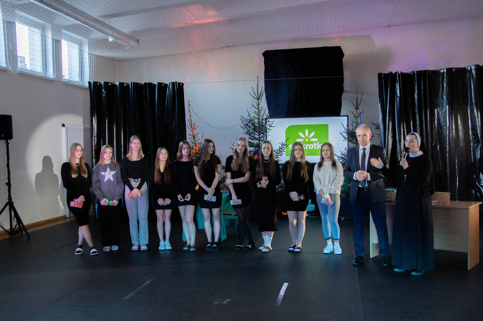 22 grudnia spotkaliśmy się na sali gimnastycznej, by wspólnie – w naszej szkolnej rodzinie – przeżywać czas Bożego Narodzenia. Spotkanie wprowadziło nas w świąteczną atmosferę – nie tą pełną promocji, szału zakupów, przepychu, lecz prawdziwie świąteczną. Podczas szkolnych jasełek przypomnieliśmy sobie o tym, co naprawdę ważne – o tym, że w tej świątecznej gorączce często zapominamy o Chrystusie, zapominamy o tym, że narodził się Bóg! Pójdźmy za głosem Anioła, który mówił do nas podczas jasełek, próbując przebić się przez podszepty złego ducha – przestańmy uciekać w wirtualny świat, w świat krzyczący do nas z kolorowych reklam, a wsłuchajmy się w swoje serce, bo tam mówi do nas żywy Bóg. Nie pozwólmy, by w te święta pozostał On samotny, czy to w naszym sercu, czy to w drugim człowieku. Dziękujemy młodzieży i siostrze Nikodemie za tę duchową ucztę. Brawo, Wy zawsze wiecie, jak dotknąć naszych serc!