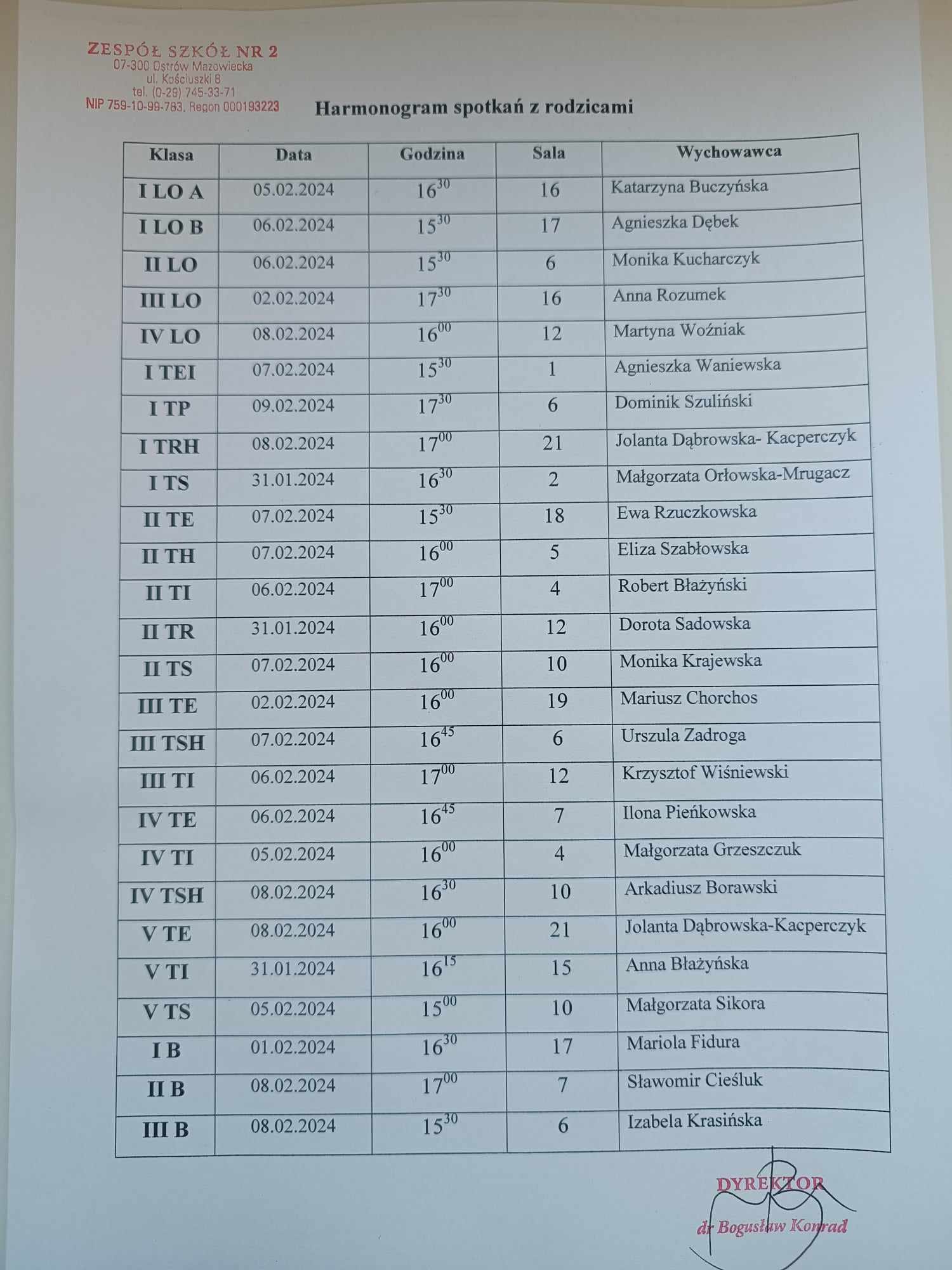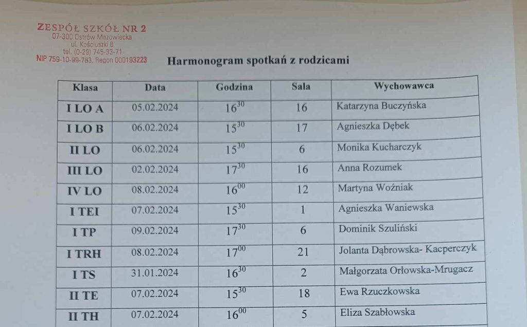 Harmonogram spotkań z rodzicami / Wiadomości ze szkoły / By Dominik Szuliński Zapraszamy do zapoznania się z harmonogramem spotkań z rodzicami: DOKUMENT PDF