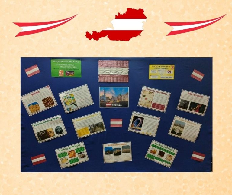 Dziękujemy również uczennicom klasy II TS – Wiktorii Todorczuk, Paulinie Wyszomierskiej oraz Zuzannie Szczechurze za pomoc w przygotowaniu wystawy o Austrii, która znajduje się w wejściu głównym.