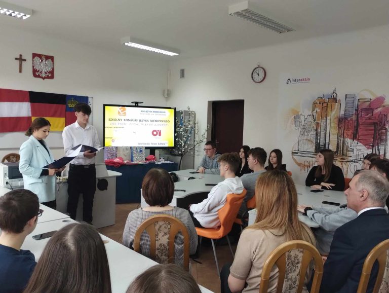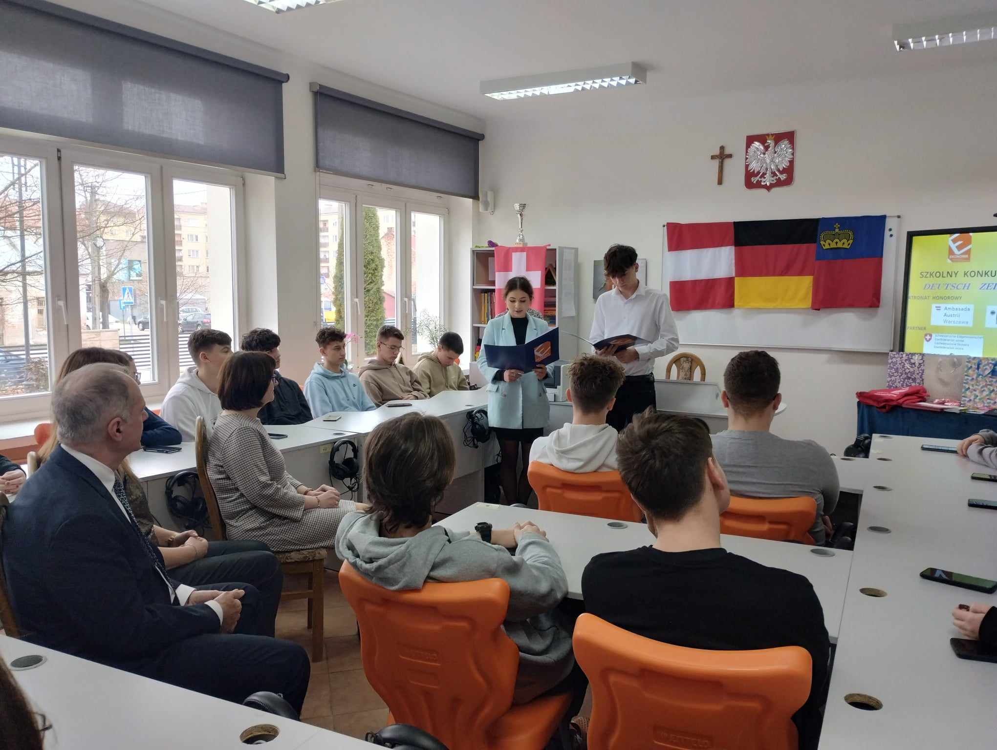 W dniu 15 lutego 2024 roku odbył się Szkolny Konkurs Języka Niemieckiego „DEUTSCH – ZEIGE, WAS DU KANNST” dla uczniów klas I i II Liceum Ogólnokształcącego i Technikum.