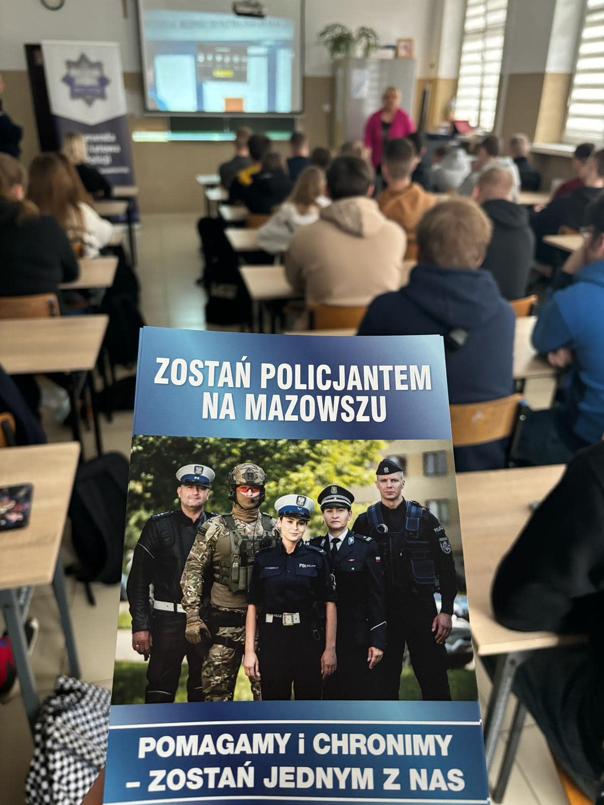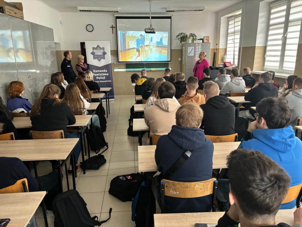 13 marca br. w naszej szkole odbyło się spotkanie młodzieży „Ekonomika” z przedstawicielami Komendy Powiatowej Policji w Ostrowi Mazowieckiej: mł. asp. Emilią Podbielską, st. asp. Markiem Morawskim oraz p. Beatą Krajewską i p. Edytą Kurowską – specjalistami Zespołu Kadr i Szkolenia Referatu Ogólnego KPP w Ostrowi Mazowieckiej.
