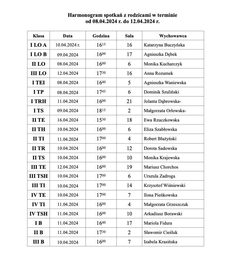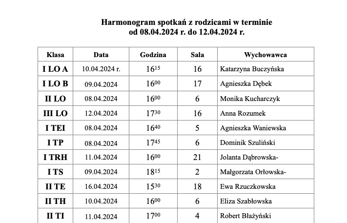 Harmonogram spotkań z rodzicami / Wiadomości ze szkoły / By Dominik Szuliński Zapraszamy do zapoznania się z harmonogramem spotkań z rodzicami HARMONOGRAM