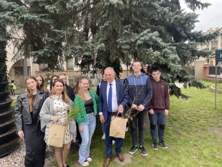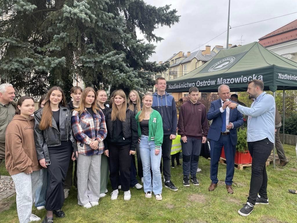 Dzisiaj delegacja naszych uczniów na czele z panem Dyrektorem B. Konradem i p. U. Zadrogą wzięła udział w akcji „Drzewko za surowce wtórne”, która odbyła się przy siedzibie Nadleśnictwa Ostrów Mazowiecka.