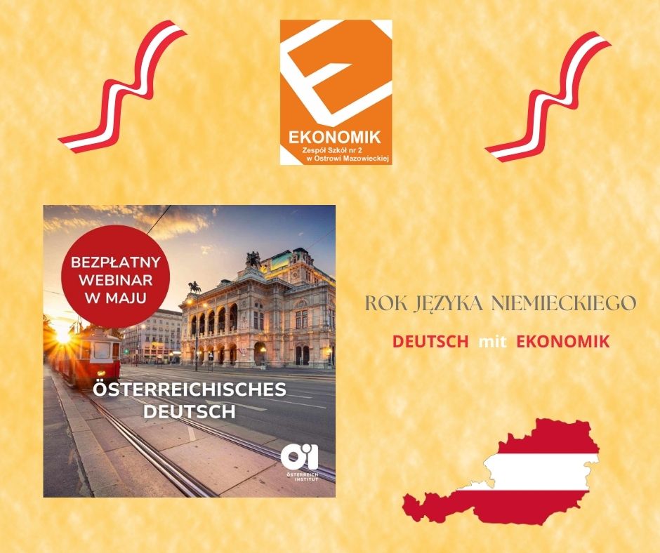 W dniu 7 maja 2024 r. grupa chętnych uczniów z klasy II TI i IV TSH razem z panią J. Pecko i panią A. Waniewską wzięła udział w webinarium pt.: „Österreichisches Deutsch?”, które zostało zorganizowane przez Instytut Austriacki we Wrocławiu.