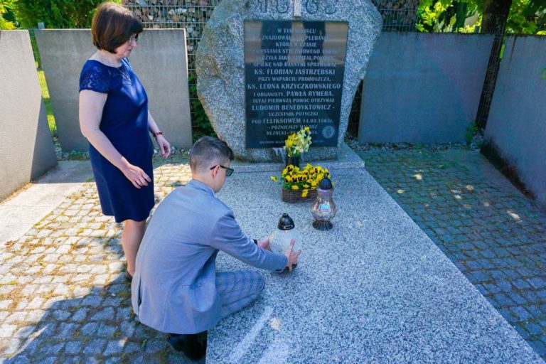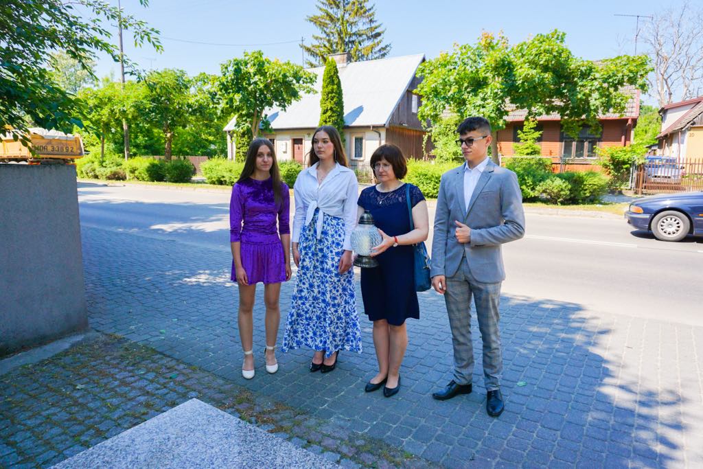 Uroczystość rozpoczęła się symbolicznym gestem – delegacja uczniów, na czele z wicedyrektorem szkoły, panią Małgorzatą Grzeszczuk, zapaliła znicze przy obelisku w miejscu dawnej plebanii. To właśnie tam, w czasach Powstania Styczniowego, znajdował się szpital polowy. Był to moment zadumy i refleksji, mający na celu uczczenie pamięci lokalnych bohaterów, którzy walczyli za wolność i niepodległość.