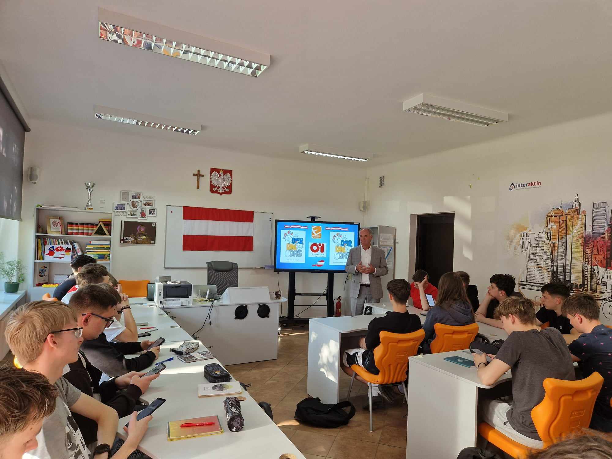 W dniach od 14 maja do 25 maja 2024 roku uczniowie klasy I TRH, I LOb, I TEI, II TI, II TS i III LO razem z panią Jagodą Pecko i panią Agnieszką Waniewską skorzystali na zajęciach lekcyjnych z bezpłatnej aplikacji edukacyjnej www.deutsch.info (DER DIE DAS – Spielerisch Artikel lernen), której partnerem jest Instytut Austriacki w Warszawie.