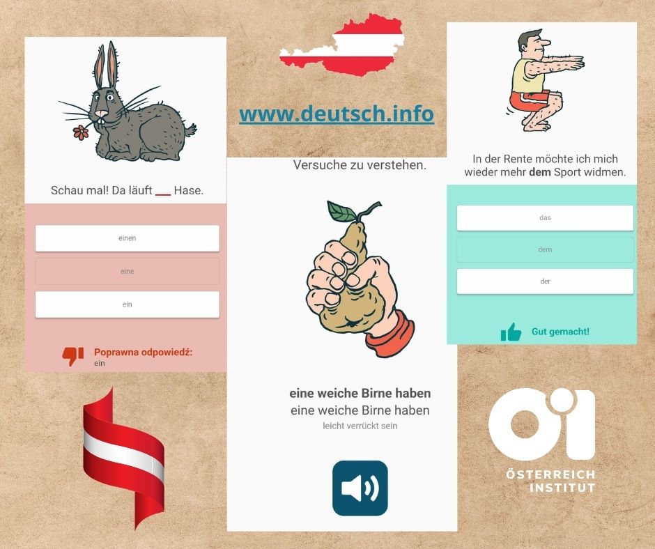 Dziękujemy Österreichiches Institut Warszawa www.oesterreichinstitut.com/pl/strona-glowna za możliwość skorzystania z aplikacji i uatrakcyjnienie lekcji języka niemieckiego.