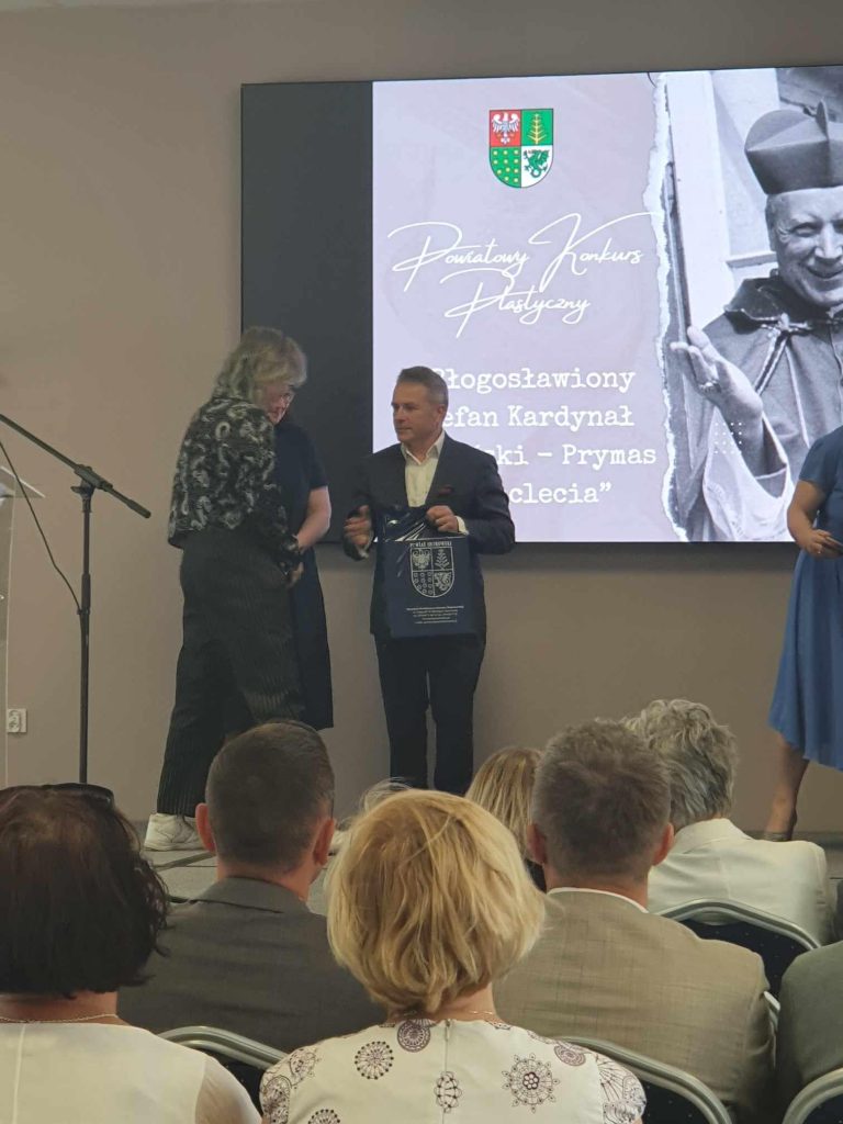 28 maja 2024 r. przedstawiciele naszej szkoły uczestniczyli w obchodach Dnia Patrona Powiatu Ostrowskiego. Po Mszy Świętej w Kościele św. Apostoła Szymona i Judy Tadeusza w Zarębach Kościelnych, występie dzieci z Publicznej Szkoły Podstawowej im. Jana Pawła II w Zarębach Kościelnych i prelekcji pt. „Dom rodzinny” wygłoszonej przez ks. dr. Dariusza Tułowieckiego, wykładowcę na Uniwersytecie Kardynała Stefana Wyszyńskiego w Warszawie, nastąpiło uroczyste wręczenie nagród za udział w powiatowym konkursie plastycznym „Błogosławiony Stefan Kardynał Wyszyński – Prymas Tysiąclecia” pod honorowym patronatem Instytutu Prymasowskiego Stefana Kardynała Wyszyńskiego.