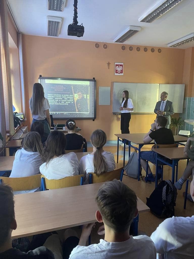 Promocja szkoły / Wiadomości ze szkoły / By Dominik Szuliński Kolejne spotkanie z ósmoklasistami za nami – odwiedziliśmy Szkołę Podstawową w Czerwinie. Dziękujemy i zapraszamy do Ekonomika!
