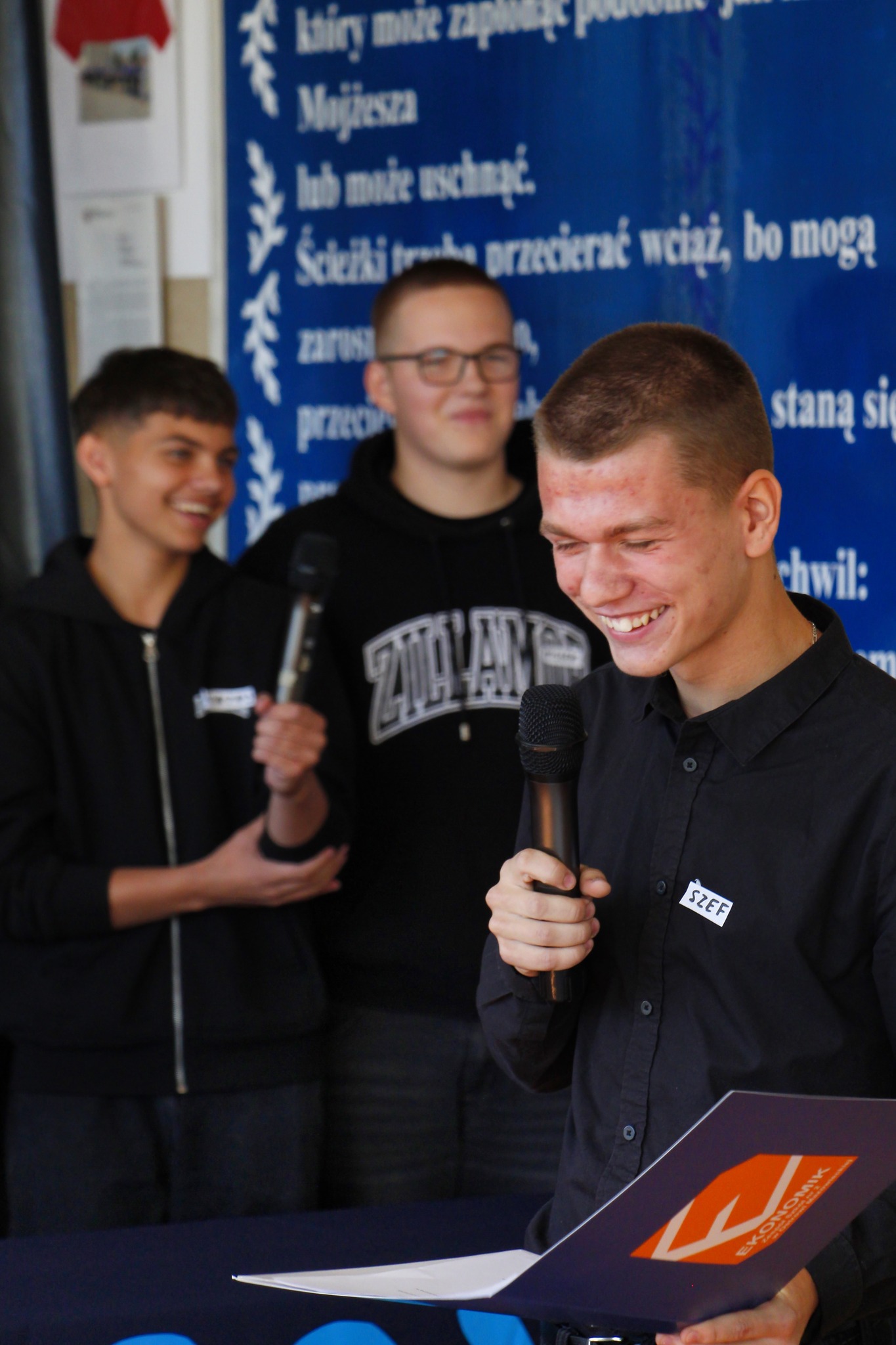 Samorząd Uczniowski-Ekonomik Ostrów Mazowiecka. W quizie wzięły udział dwie drużyny – chłopaków oraz dziewczyn i ich zadaniem było udzielenie odpowiedzi na pytania z różnych dziedzin w pięciu kolejnych rundach.