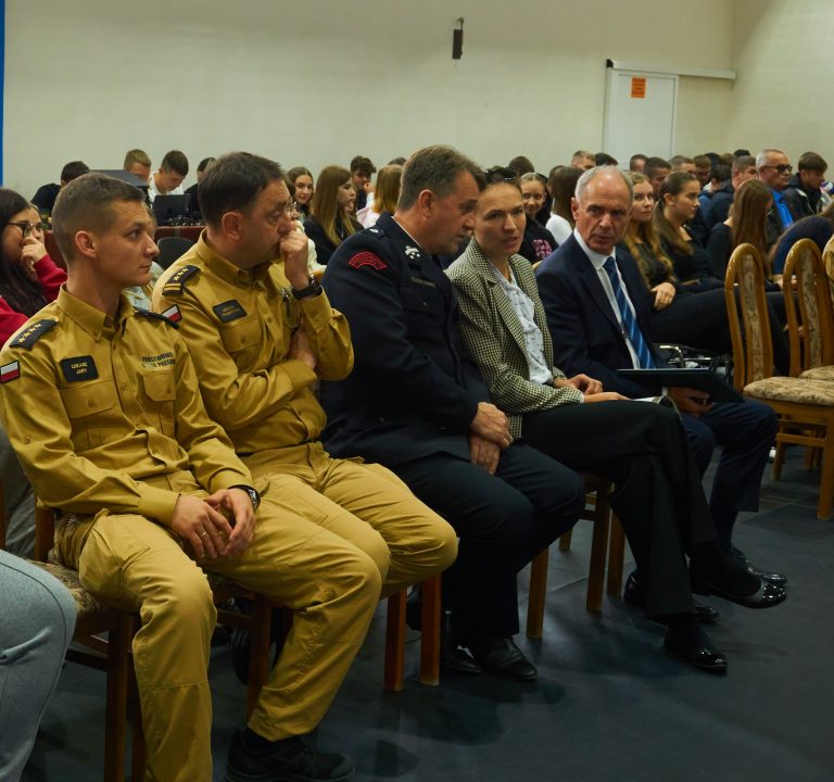 W dalszej części spotkania wszyscy zgromadzeni wysłuchali interesujących wykładów przygotowanych przez ekspertów z Akademii Pożarniczej. Podczas pierwszego wykładu przedstawiono wyzwania, jakie niesie ze sobą współczesna rzeczywistość – od klęsk żywiołowych, pożarów, powodzi, po zagrożenia związane z katastrofami technologicznymi czy wypadkami komunikacyjnymi. Prelegent uwrażliwiał na potrzeby osób, które znalazły się w trudnych, dramatycznych sytuacjach oraz zwracał uwagę na konieczność szybkiej i efektywnej organizacji pomocy w sytuacjach kryzysowych. Słuchacze mieli okazję pod okiem specjalistów uczyć się podstaw pierwszej pomocy, obsługi sprzętu ratowniczego oraz zachowania w sytuacjach awaryjnych. Tematyka drugiego wystąpienia dotyczyła nowoczesnych technologii i rozwiązań w ratownictwie na rzecz ochrony ludności – pokazywała, w jaki sposób wykorzystanie dronów przez organy ścigania, strażaków, zespoły poszukiwawcze i ratownicze oraz inne służby mundurowe pomaga ratować życie, stając się częścią bezpieczeństwa publicznego w różnych krajach na całym świecie.