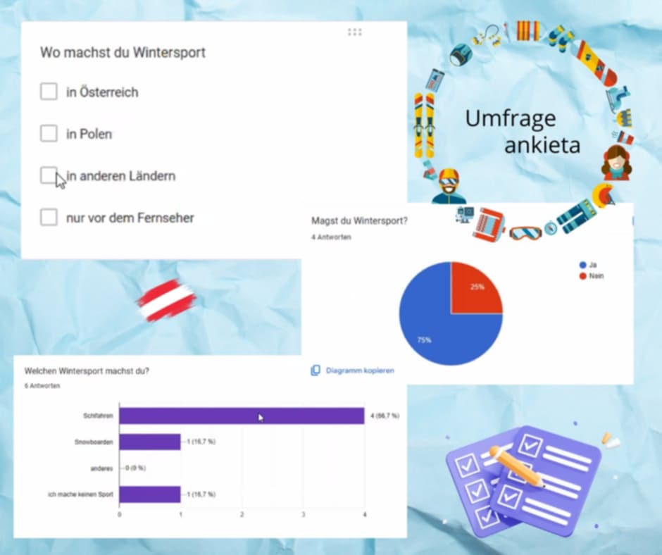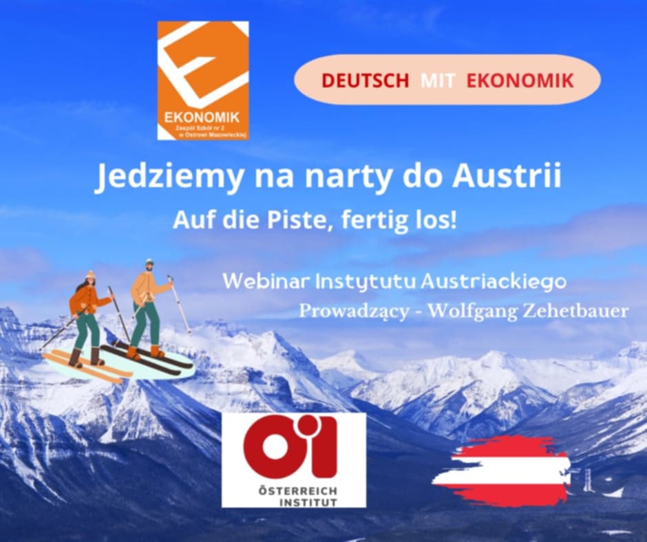 W dniu 9 grudnia 2024 roku grupa chętnych uczniów z klasy I TIP, II LOb, II TRH oraz III TI wzięła udział razem z panią dr J. Pecko w webinarium online pt.: „Jedziemy na narty do Austrii – Auf die Piste, fertig los!”.