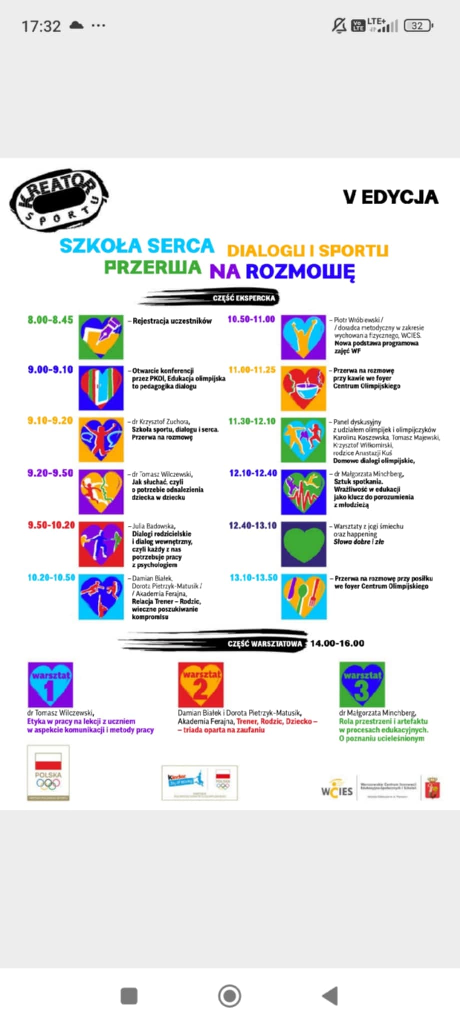 W dniu 10.12 nauczyciel wychowania fizycznego Kamil Malec uczestniczył w konferencji pn. ” Szkoła serca, dialogu i sportu”, organizowanej przez Centrum Olimpijskie w Warszawie. Jednym z wykładowców podczas konferencji był dr Krzysztof Zuchora, nauczyciel akademicki Akademii Wychowania Fizycznego w Warszawie. Interesującym punktem programu był panel dyskusyjny, w którym brali udział polscy sportowcy, w tym dwukrotny mistrz olimpijski w pchnięciu kulą -Tomasz Majewski.