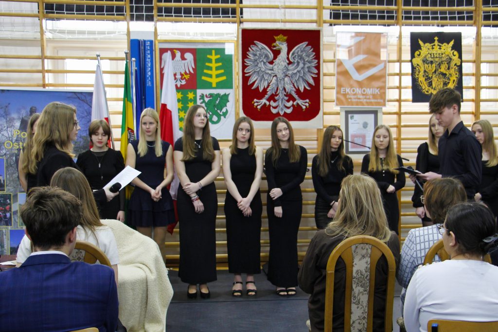 Kulminacyjnym punktem obchodów była akademia, która odbyła się 21.01.25r. W wydarzeniu wzięli udział znamienici goście: Starosta Powiatu Ostrowskiego – Pan Jerzy Bauer oraz Przewodnicząca Rady Rodziców i Dyrektor Wydziału Inwestycji i Rozwoju Powiatu w Starostwie Powiatowym – Pani Urszula Waniewska.