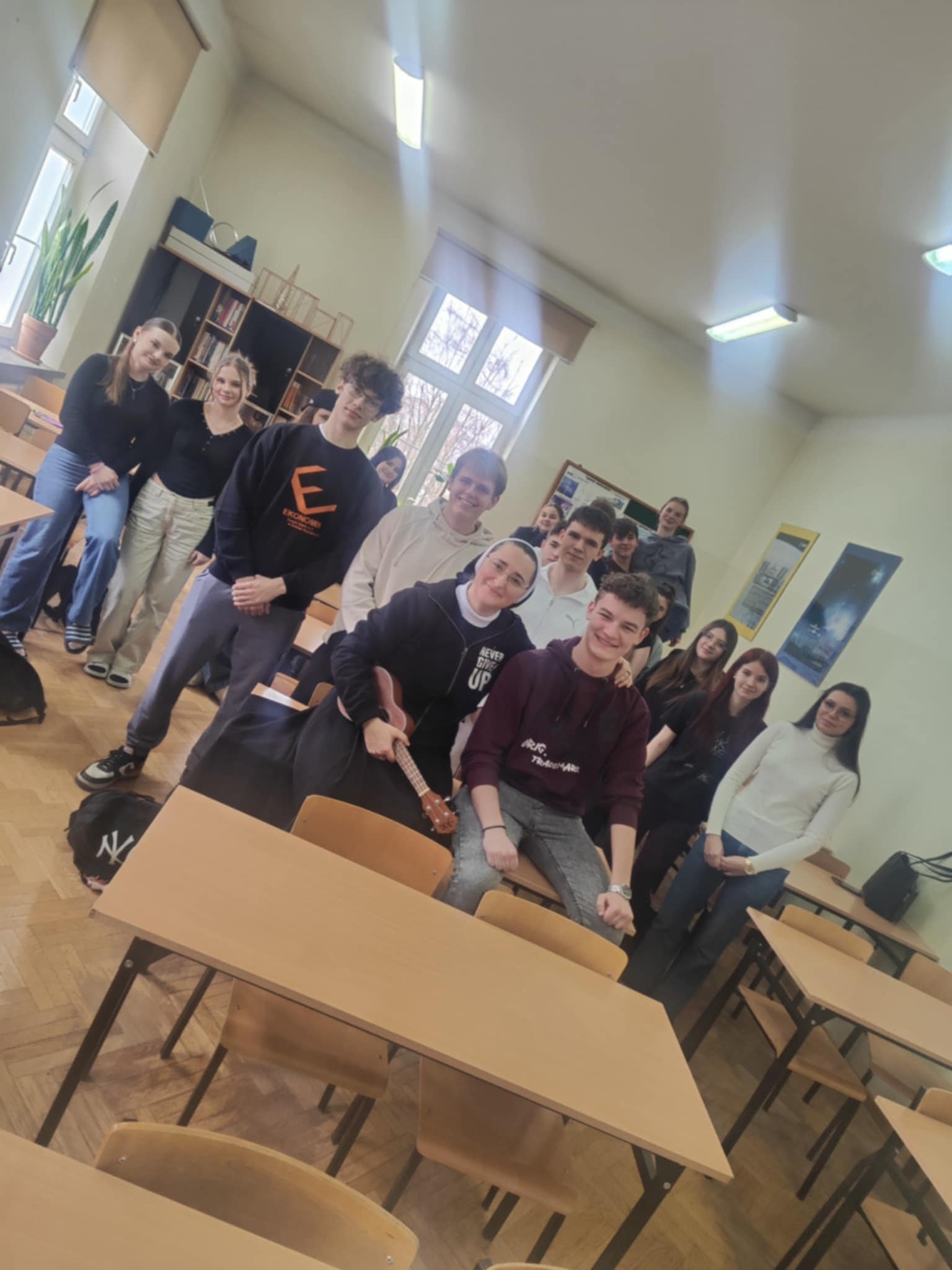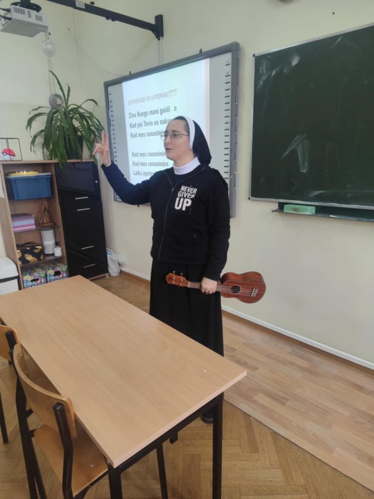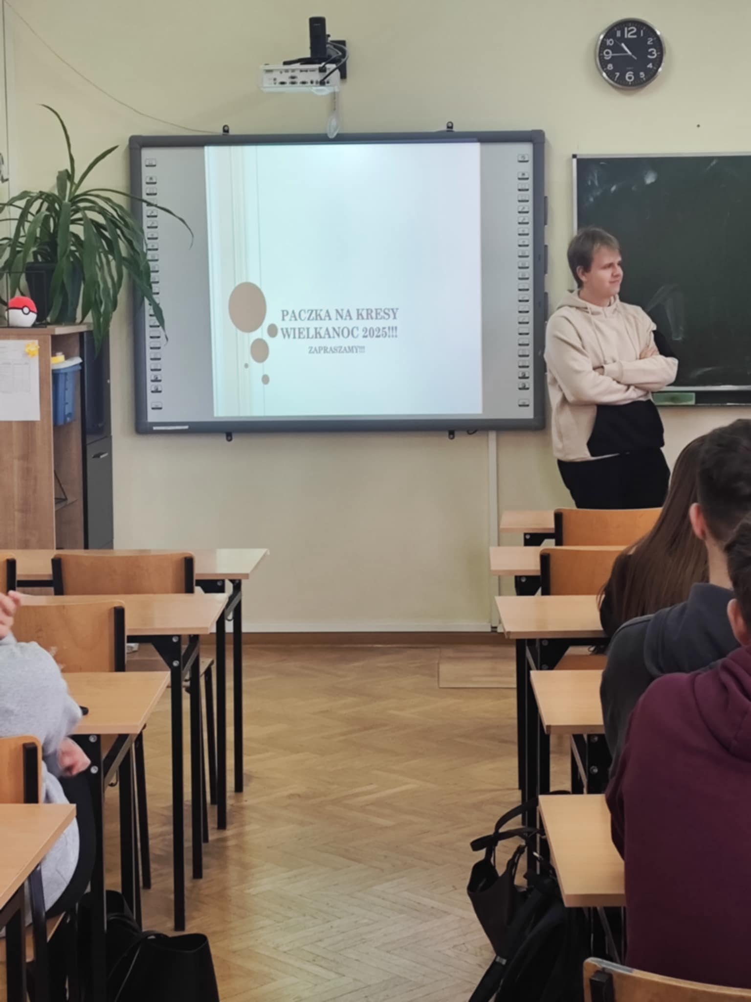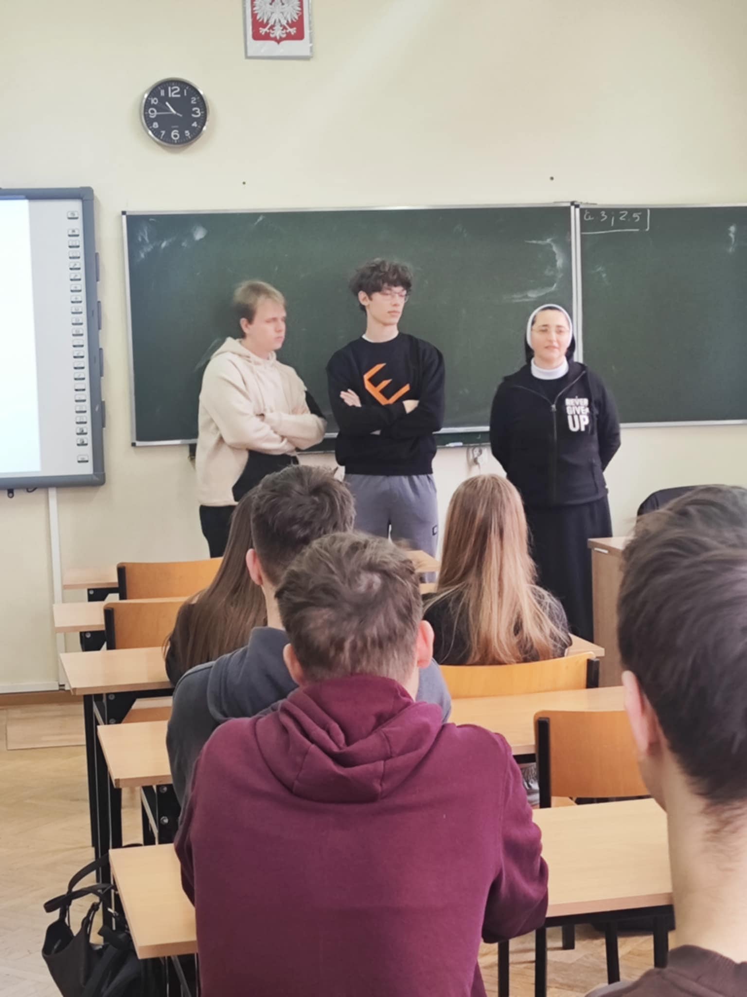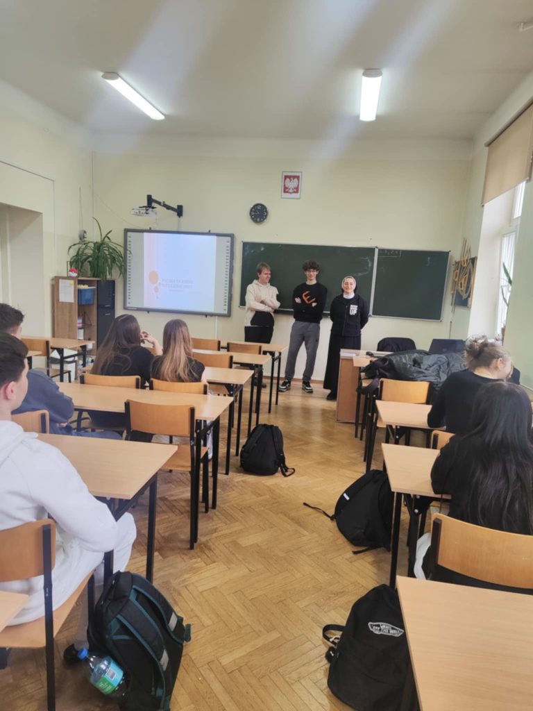 25.02.2025 wolontariusze Szymon i Franciszek z Paczki Na Kresy z naszej szkoły wraz z s. Nikodemą byli w LO im. M. Kopernika, by dzielić się wrażeniami z wyjazdu na Łotwę oraz informacjami, jak sprawnie przeprowadzić zbiórkę żywności, która trafi do potrzebujących na Łotwie.