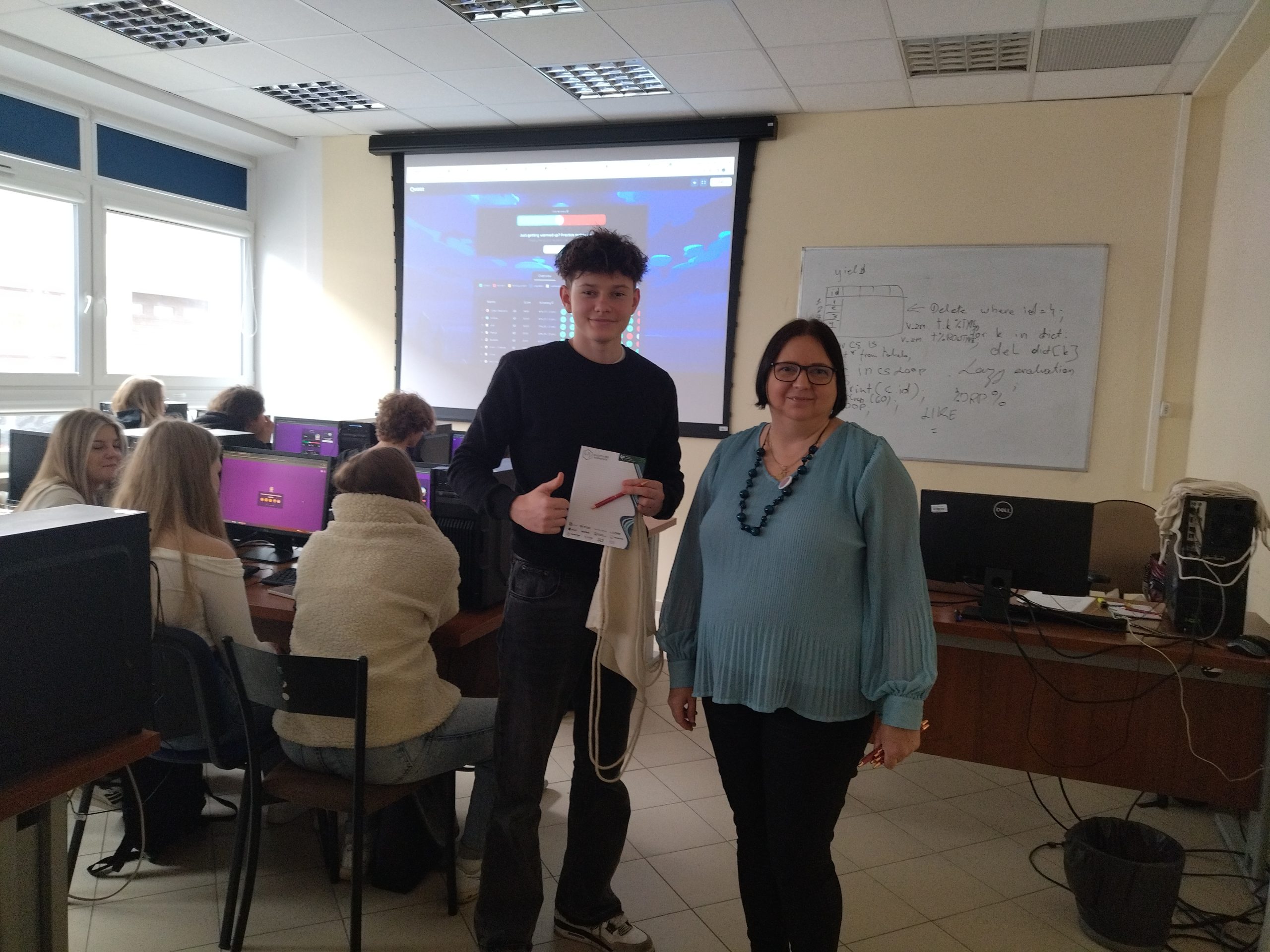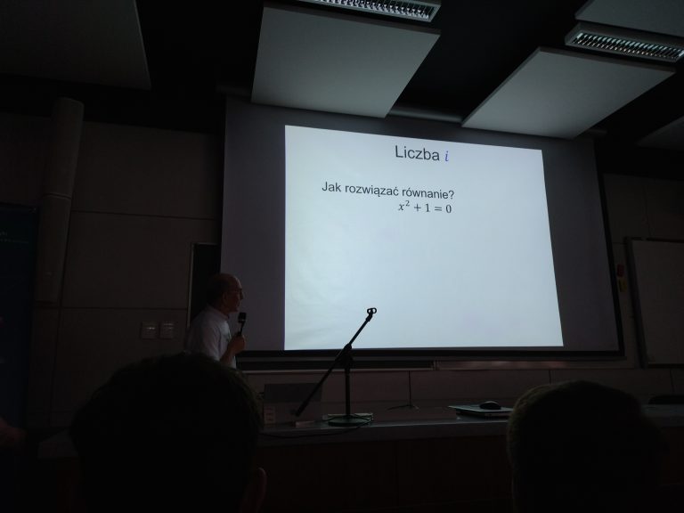 Na początku nasi uczniowie z uwagą wysłuchali wykładu prof. dr hab. inż. Zbigniewa Bartosiewicza. Pan Profesor w swoim wystąpieniu przybliżył nam „epickie liczby” takie jak e, pi, i. Zaprezentował rozwiązanie równania x2 + 1= 0 w zbiorze liczb zespolonych oraz postać algebraiczną i trygonometryczną tych liczb. Po wykładzie, młodzież Ekonomika, uczestniczyła w zajęciach warsztatowych, podczas których wzięła udział w quzie, zdobywając nagrody – gadżety. Gratulujemy!
