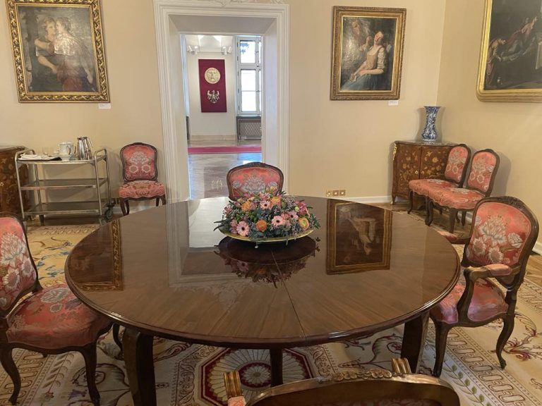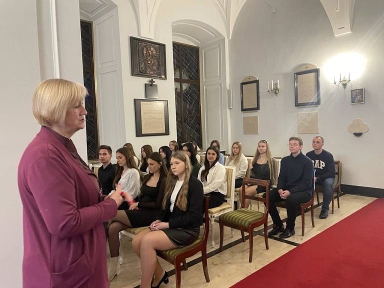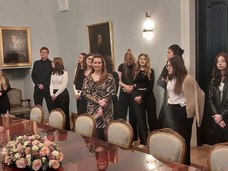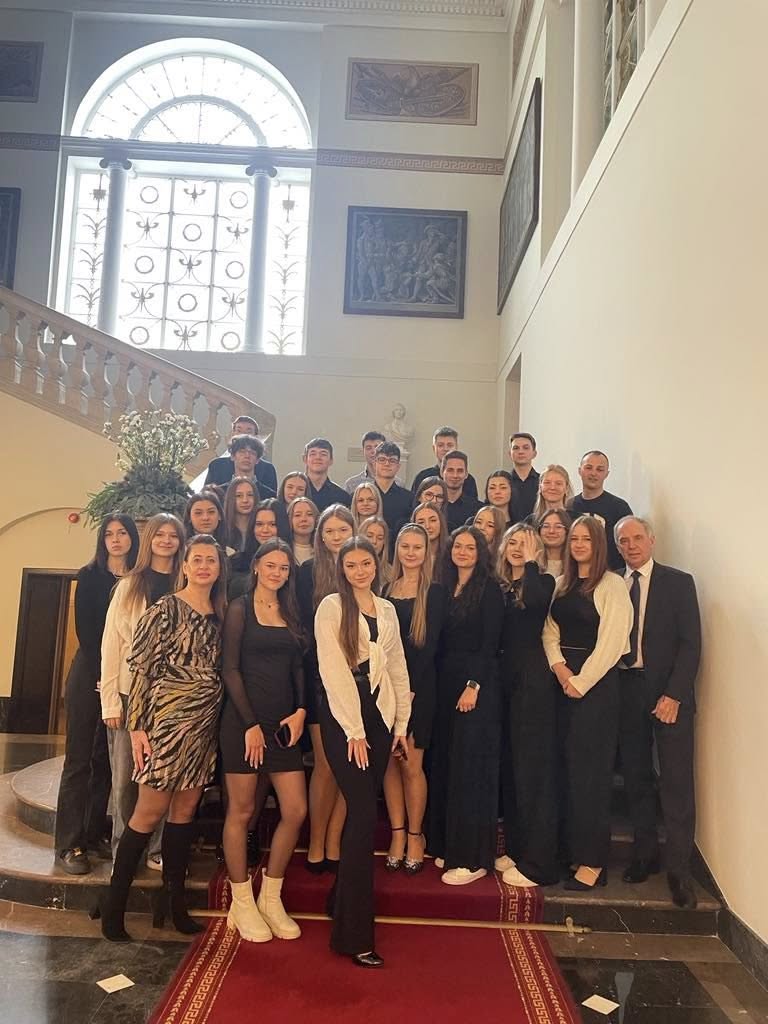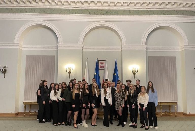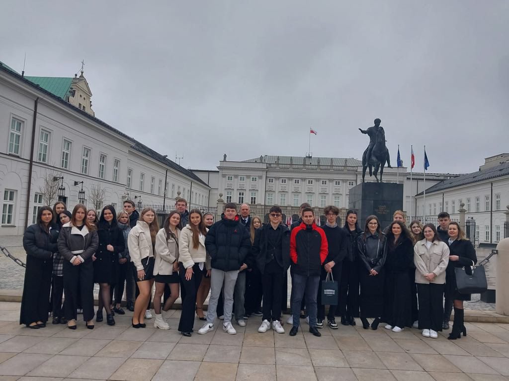 Głównym punktem programu było zwiedzanie Pałacu Prezydenckiego, jednego z najważniejszych i najbardziej reprezentacyjnych miejsc w Polsce. Uczniowie mieli okazję zobaczyć przepiękne sale, zapoznać się z historią tego zabytkowego budynku oraz dowiedzieć się, jak wygląda praca w Pałacu Prezydenckim. To była niezapomniana lekcja historii i polityki w sercu naszej stolicy.